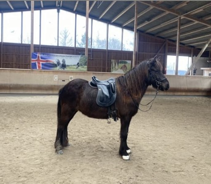Atorka ist seit Ende des Sommers unter dem Sattel und zeigt sich überdurchschnittlich gut in allen Gängen. Aktuell ist sie viergängig geritten, mit ganz viel einfach zu reitendem Tölt, allerdings hat sie auch eine tolle Passveranlagung. Sie hat einen guten Vorwärtsdrang, der aber jederzeit händelbar ist, im Gelände wie auf der Bahn zeigt sie sich vorbildlich. Vorstellbar wäre es, sie im Sport einzusetzen oder auch in der Zucht, da sie aktuell einen Blup von 111 hat. 2022 hatte sie bei uns ihr erstes Fohlen, was direkt mit einer Wertnote von 7,96 beurteilt wurde. Sie geht alleine, wie auch in der Gruppe ins Gelände.