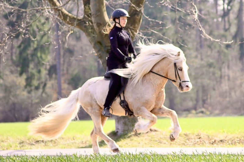 Fjórar Stjörnur vom Wittelsbacherland to elegancki ogier czterobiegowy. Jego cztery chody są wyraźnie od siebie oddzielone, eleganckie, łatwe w jeździe i charakteryzują się wysokim zakresiem ruchu. Ponadto jest on dobrze i łatwo regulowany w każdej sytuacji i o każdej porze. Fjórar zachwyca pięknym kolorem (jasny isabel z odcieniami windfarb i splash white carrier), dużym białym umaszczeniem oraz przyjaznym charakterem. Jego ojcem jest znany Dagfari frá Sauðárkróki (Fizo łącznie 8,34). Oprócz Fjórar, posiadamy w ofercie wiele innych koni na sprzedaż. Zapraszamy do kontaktu w celu umówienia się na prezentację – wspólnie znajdziemy odpowiedniego konia dla Ciebie!