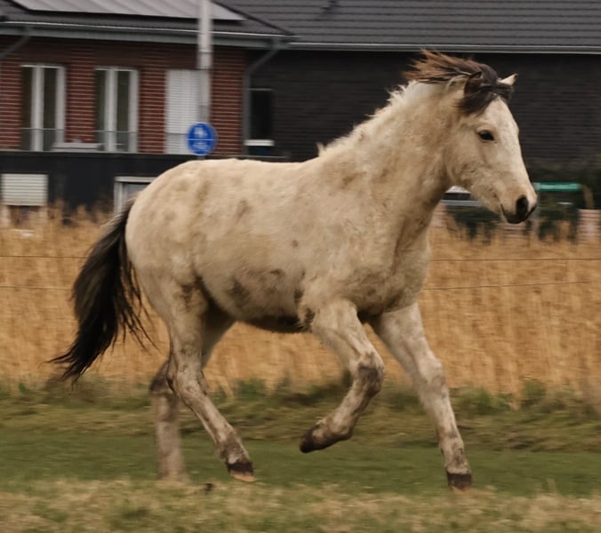 Kári vom Röttgershof to bardzo duży i dobrze rozwinięty pinto w kolorze ziemi. Jest oswojony i wyszkolony. Dorasta w stadzie młodych ogierów. Ostatnie zdjęcia przedstawiają rodziców Káriego. Więcej koni na sprzedaż można znaleźć na naszej stronie internetowej www.roettgershof.jimdo.com. Chętnie odpowiemy na pytania przez e-mail lub WhatsApp 0172/2846485.