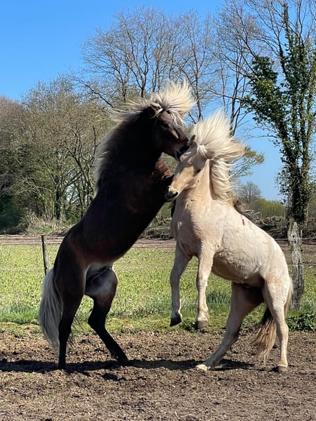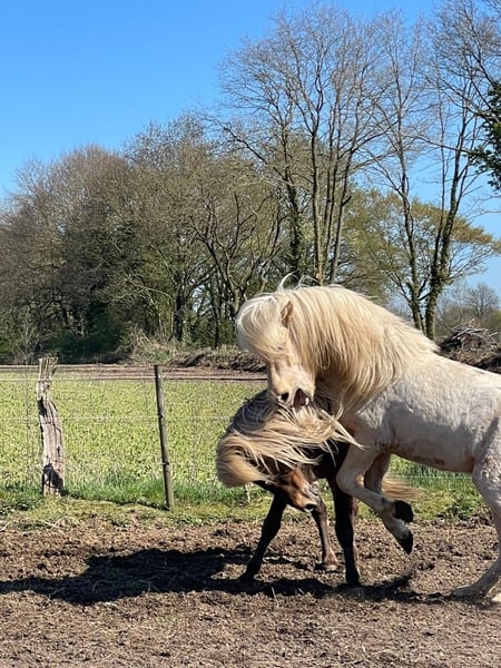 Sveidi von Seimur, een jonge hengst met veel potentieel! Wij bieden een veelbelovende IJslandse hengst te koop aan. Geboren in 2023, overtuigt deze jonge hengst door zijn veelbelovende afstamming, bijzondere kleur (fuchs/Palomino) en lange, volle manen. Met een stokmaat van ongeveer 138 cm is hij al goed ontwikkeld en toont hij een harmonieuze lichaamshouding, wat wijst op een veelbelovende toekomst in de fokkerij, sport of recreatie. De hengst beschikt over de typische eigenschappen van het IJslandse paard: een robuuste constitutie, uitstekende tredzekerheid en een vriendelijk karakter. Zijn open en aangename aard maken hem tot een ideale partner voor fokkers die waarde hechten aan kwaliteit en karakter. Dit IJslandse paard is een echt ruwe diamant, dat overtuigt door zijn genetische diversiteit en potentieel. Met de juiste begeleiding is hij uitstekend geschikt voor de fokkerij, maar ook voor sport en recreatie, vooral voor ruiters die de veelzijdigheid en het karakter van het IJslandse paard waarderen. Voor meer informatie of een persoonlijke bezichtiging staan wij graag voor u klaar. Dit jonge IJslandse paard biedt een uitstekende gelegenheid voor fokkerijen en liefhebbers van het IJslandse paard.