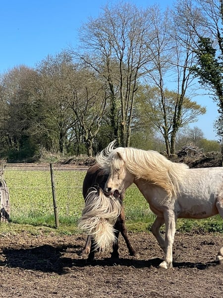 Sveidi von Seimur – młody ogier z wielką przyszłością! Oferujemy na sprzedaż obiecującego konia islandzkiego, urodzonego w 2023 roku. Ten młody ogier wyróżnia się obiecującym rodowodem, unikalną umaszczeniem (srokata/Palomino) oraz długim, pełnym frędzlem. Z wysokością w kłębie około 138 cm jest już dobrze rozwinięty i prezentuje harmonijną sylwetkę, co wskazuje na obiecującą przyszłość w hodowli, sporcie czy rekreacji. Ogier posiada typowe cechy koni islandzkich: mocną budowę, wyraźną pewność kroku oraz przyjazne usposobienie. Jego otwarta natura i przyjemny charakter czynią go idealnym partnerem dla hodowców ceniących jakość i charakter. Ten islandzki koń to prawdziwy diament w surowym stanie, zachwycający swoją genetyczną różnorodnością i potencjałem. Przy odpowiedniej stymulacji jest doskonałym kandydatem do hodowli, a także do sportu i rekreacji, szczególnie dla jeźdźców doceniających wszechstronność i charakter typowych koni islandzkich. Chętnie udzielimy dodatkowych informacji lub umówimy się na osobistą wizytę. To młode islandzkie konie stanowi doskonałą okazję dla hodowców i miłośników koni tego typu.
