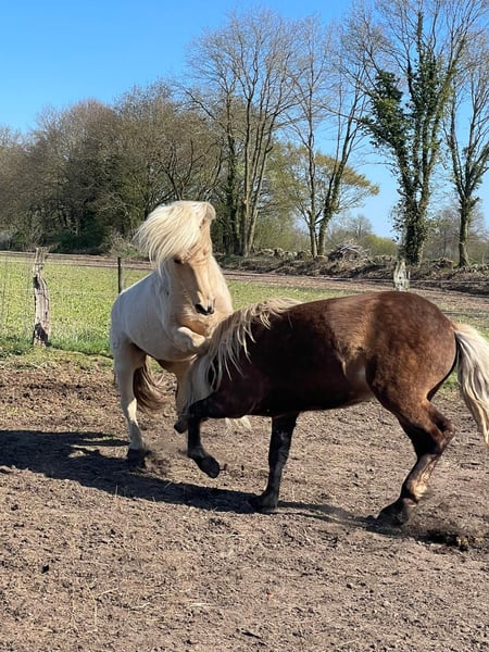 Sveidi de Seimur, un jeune étalon avec un bel avenir ! Nous proposons à la vente un étalon islandais prometteur. Né en 2023, ce jeune étalon impressionne par sa généalogie de qualité, sa robe spéciale (Fuchsisabell/Palomino) et sa longue crinière abondante. Avec une hauteur au garrot d’environ 138 cm, il est déjà bien développé et affiche une posture harmonieuse, annonciatrice d’un avenir prometteur en élevage, en compétition ou en loisir. L’étalon possède les caractéristiques typiques des chevaux islandais : constitution robuste, excellente stabilité de pas et tempérament amical. Son comportement ouvert et son caractère agréable en font un partenaire idéal pour les éleveurs soucieux de la qualité et du caractère. Ce cheval islandais est un véritable diamant brut, convaincant par sa diversité génétique et son potentiel. Avec un encadrement adapté, il est parfaitement apte à la reproduction, mais aussi à la compétition et aux activités de loisir, notamment pour les cavaliers appréciant la polyvalence et le tempérament typique des chevaux islandais. Pour toute information complémentaire ou pour organiser une visite, n’hésitez pas à nous contacter. Ce jeune cheval islandais représente une excellente opportunité pour les élevages et les amateurs de chevaux de type islandais.