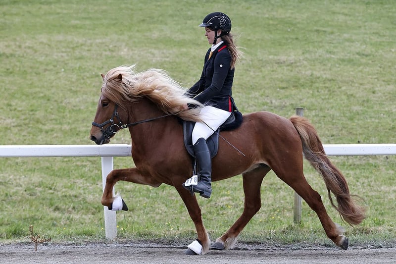 Ægir frá Byskogi 2019 geboren, Fuchs V: Herkules frá Ragnheiðarstöðum (FIZO: 8,47) M: Prýði frá Feti (FIZO: 8,04) Ægir ist ein sechsjähriger sehr talentierter und freundlicher Fünfganghengst mit sehr viel Mähne. Er möchte dem Reiter immer gefallen, hat mittleres Temperament, gibt einem ein schönes Reitgefühl und ist im Umgang sehr brav. Ægir verfügt über viel Leicht zu reitenden Tölt, der immer taktklar ist, vom langsamen bis ins schnelle Tempo. Sein Trab hat sehr guten Raumgriff, viel Fluss und eine gute Schwebephase, sein Schritt ist schreitend, sein Galopp gut gesprungen bei guter Bewegung und sein Pass sehr vielversprechend mit gutem Tempo, bereits nach kurzem Training. Er hat eine sehr gute Gangtrennung und hoch-weite Bewegungen in allen Gängen. Auch die ersten Turniererfahrungen konnte er bereits sammeln: fünfjährig erhielt er 6,5 als Fünfgänger im Futurity Viergang (6,5 auf Tölt, Trab, Präsenz, 6,4 auf Galopp, 6,6 auf Schritt) und sechsjährig bekam er 6,66 im Futurity Fünfgang (7,0 auf Pass, 6,8 auf Präsenz, 6,7 auf Tölt, 6,2 auf Schritt und Galopp, 6,4 auf Trab). Auch seine Abstammung lässt keine Wünsche offen: Sein Vater ist der bekannte Ehrenpreisträger Herkules frá Ragnheiðarstöðum. Seine Mutter ist die Elite geprüfte Stute Prydi frá Feti. Er eignet sich bei weiterer Ausbildung sicherlich sowohl für den Turniersport (Fünfgang, Viergang, Passdisziplinen oder Tölt T2/T1), aber aufgrund seines guten Charakter natürlich auch als toller Freizeitkumpel oder ist für die Zucht interessant. Ægir ist gesund, ekzemfrei und seit seinem ersten Lebensjahr in Deutschland.