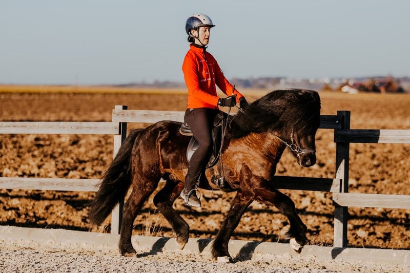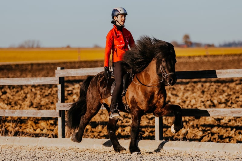 Der eindrucksvolle Hengst IS2020184505 - Eyvinur frá Skíðbakka III hat viel mehr zu bieten als nur seine Black Beauty Erscheinung! Seine besondere Stärke ist auffallend flüssiger, taktklarer Tölt mit guter Tempovarianz und deutlichem Talent fürs Zügelüberstreichen. Die 10 für Tölt seines Vaters Ljúfur frá Torfunesi und die 9 für Tölt seiner Mutter machen sich an dieser Stelle wohl nachdrücklich bemerkbar... Bergauf gesprungener Galopp, schwungvoller Trab und sicherer Rennpass ergänzen das gleichmäßige Fünfgang-Package, das Eyvinur mit viel Ausstrahlung präsentiert. Dabei kommt er aufgrund seines einfachen Mindsets und seines mittleren Vorwärts für viele Reiter/innen in Frage - egal, ob als hochqualitatives Spaßpferd oder - bei weiterer Förderung - als Sportpartner. Und abgesehen vom Reiten? Im Umgang ist Eyvinur ein großer Kuschler und genießt es Streicheleinheiten und Aufmerksamkeit zu bekommen. www.gratzl.co.at