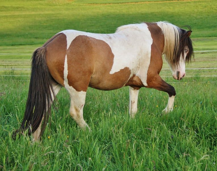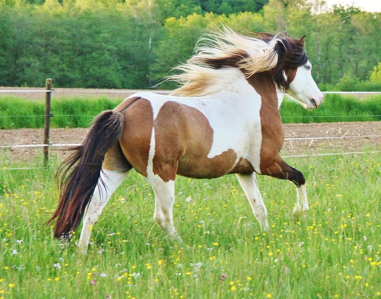 Ben je op zoek naar een hengst met een wow-effect? Een gevoelig paard met iets meer temperament? Velvakandi is in 2018 bij mij geboren, sindsdien vrij van eczeem, regelmatig ontwormd, gevaccineerd en de hoeven verzorgd. Vanwege een blessure tijdens de dekking van een merrie is zijn inzet als rijpaard mogelijk beperkt, daarom wordt hij gunstig en voor de lange termijn in de beste handen weggegeven. Alleen te koop als fokhengst. Hij is jongpaardmatig gewend om gehanteerd te worden en ook hufverzorging en laden gaan hem goed af. Vanwege gebrek aan tijd is hij tot nu toe nog niet bereden, maar hij is nu eigenlijk op de perfecte leeftijd daarvoor. Hij is geen paard voor een snelle training, maar moet rustig en met geduld bereden en opgeleid worden, zodat je een betrouwbare en plezierige partner krijgt. Vanwege zijn blessure is waarschijnlijk alleen recreatief rijden mogelijk. Zijn iets gevoelige, eerlijke, vriendelijke en brave karakter, gecombineerd met een hoog goed hanteerbaar temperament, maken hem energiek en werkwillig. In de vrije beweging reageert hij direct op lichte hulp, zonder te worden paniekerig. Velvakandi heeft een fijn, elegant hoofd met een goed aangezette, slank wordende hals en een licht gebogen hals-ruglijn. Met ongeveer 137 cm en zijn sportieve bouw kan hij goed voldoen aan de eisen van de gemiddelde volwassene, omdat hij stevig en krachtig gebouwd is, met een niet te lange rug en goede benen. Als veulen is hij getest met een score van 7,9 voor Extensief, 8,2 voor Intensievelijk en 8,0 voor Gang. Hij is een grotendeels correct gebouwd hengstveulen met gelijke Tölt en draf, met vrij hoge bewegingen en veel tempo. Als vijfgangenpaard beschikt hij over goede en sterk ontwikkelde basisgangen, met veel ruimte, schwung en tempofähigkeit, en mooie bewegingen. De Tölt is altijd zichtbaar, vooral in overgang, en in overvloed aanwezig. Als veulen en opgroeiend jongpaard heeft hij zijn potentieel in de Tölt herhaaldelijk laten zien, soms met een flinke snelheid. Als veulen heeft hij ook af en toe Pass of Rennpass laten zien, maar dat heb ik inmiddels al langere tijd niet meer gezien. De afgelopen jaren is hij door mij gebruikt voor de fokkerij, en vanwege organisatorische redenen staat hij ingeschreven onder Hb 2. Zijn nakomelingen overtuigen met een zeer vriendelijke, leergierige, coöperatieve en makkelijk te hanteren karakter. Ze zijn niet gevoelig en meestal evenwichtig tot licht sprankelend in temperament, afhankelijk van de merrie. De meeste zijn vijfgangenvererfd en beschikken over goede, kwalitatief sterke basisgangen en veel natuurlijke Tölt. Foto’s van nakomelingen op aanvraag. Door Velvakandi’s eigen kleurcombinatie is hij in staat om een hoog percentage vererfbare kleuren door te geven. Velvakandi zelf is een bruinbonte met Splash en twee blauwe ogen; zijn genetische profiel is grotendeels getest op AaEeTotoN/SW1 D. Hierdoor kunnen zijn nakomelingen alle basiskleuren combineren, met een kans van 50% op Tobiano, Splash en Falbe. Zijn vader, Fokus vom Vindstadir, is afkomstig van Bekan fra Kolsholti, een Fizo-gecertificeerde sport-A hengst die afstamt van de elitehengsten Faldur frá Syðri-Gróf, Oddur frá Selfossi en Austri frá Austurkoti. De moeder van Fokus, Flugsael vom Vindstadir, is zelf Fizo-voorgesteld; haar vader is Skarði vom Vindstadir, een elite Fizo, wereldkampioen en Sport A-hengst. Zijn moeder, Cassiopeia, is een sterke en karaktervaste merrie uit de eerste lijn, met afstamming op Djarfur frá Lukkubæ, een Fizo-gecertificeerde sporthengst die Duits kampioen en WK-deelnemer was, zoals Hjalmar frá Vatnsleysu, Sveinn-Hervar frá Þúfu í Landeyjum, enzovoort. Velvakandi kan graag persoonlijk worden ontmoet. Ook een kleine groep nakomelingen is nog ter plaatse te zien. De koper kan desgewenst een keuring laten uitvoeren. Transport is mogelijk met vergoeding van de kosten.