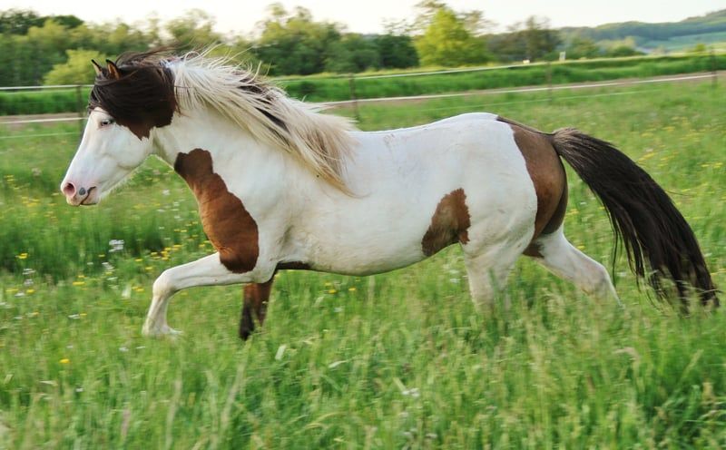 Isländer Deckhengst in Sonderfarbe Braunfalbschecke mit Splash