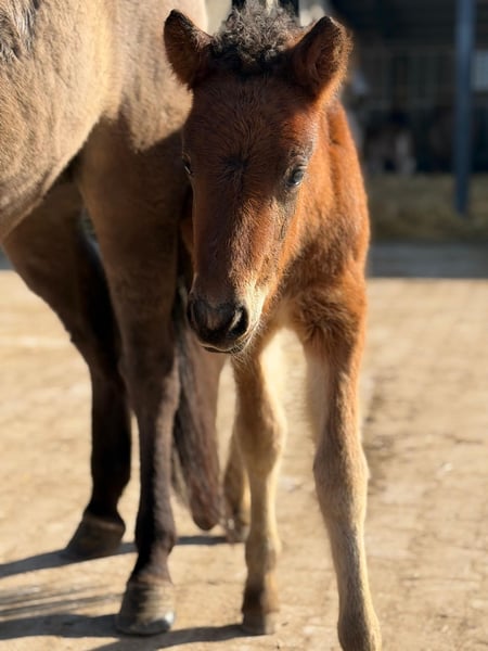Gulltoppur überzeugt bereits jetzt durch einen sehr typvollen Auftritt, kräftigen Körperbau und viel Bewegungsfreude. Schon in jungen Tagen zeigt der kleine Hengst schöne, raumgreifende Bewegungen und viel Tölt, was auf ein vielversprechendes Potenzial für die Zukunft schließen lässt. Abstammung: Die Mutter Galtroppa vom Kranichtal stammt aus einer interessanten Elternlinie mit Naddur vom Schluensee und Glæsa vom Kranichtal. Sie ist eine sehr große, ausdrucksstarke Stute und hat ihre Qualität bereits in der Zucht bewiesen. Im Jahr 2024 brachte sie das Elitefohlen Gantroppa vom Kranichtal hervor. In ihrer Mutterlinie findet sich außerdem der Weltmeister Laxness vom Störtal, was diese Abstammung zusätzlich besonders interessant macht. Der Vater ist Merkur vom Maischeiderland, ein ausdrucksstarker Hengst mit sehr guter Gangveranlagung und viel Präsenz. Er überzeugt durch schöne Bewegungen, gute Töltqualität und starken Charakter und gibt diese Eigenschaften zuverlässig an seine Nachkommen weiter. Zudem stammt er aus einer ekzemfreien Linie. Gulltoppur vereint damit Typ, Größe, Bewegung und interessante Blutlinien und zeigt schon jetzt beste Anlagen. Bei Interesse freuen wir uns über Ihre Nachricht. Neben Gulltoppur stehen bei uns auch noch viele weitere Pferde zum Verkauf. Kontaktiere uns gerne, um einen Kennenlerntermin zu vereinbaren, gemeinsam finden wir das richtige Pferd für Dich!
