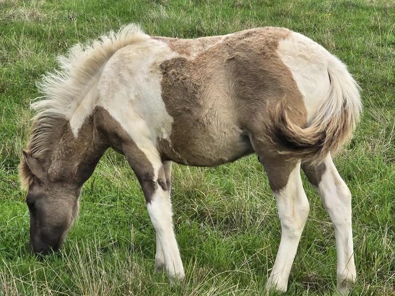 Islandfohlen zu verkaufen , Nur E-Paß und chip. Falbscheckehengst 5/2025 geb. 1600,- FP Nur in gute Hände , 0171-4001968 9-21 Uhr
