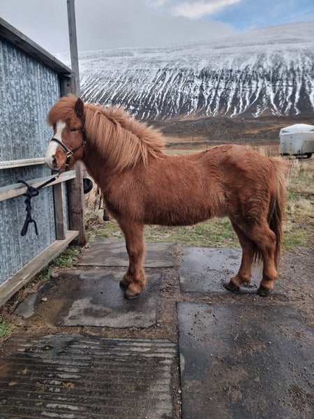 Dieser freundliche und dem Menschen zugewandt Islandwallach sucht seinen "Deckel", jemanden, dem er vertrauen kann und der Lust auf einen immer positiven, bequemen und lernfreudigen Partner hat! Er ist viergängig geritten, sein Tölt ist immer taktklar und sehr weich zu sitzen, der Trab bequem aber mit gutem Schwung, der Galopp gut gesprungen und der Schritt raumgreifend. Da er nicht der mutigste ist sollte sein Reiter etwas Erfahrung mitbringen, für gänzliche Anfänger ist er nicht geeignet. Er kennt Bodenarbeit, Viereck und Gelände, wo er auch problemlos alleine geritten werden kann. Der Reiter muss ihm nur auch dort etwas "den Weg weisen" können, also einen geschlossenen Sitz haben und klare Hilfen geben können. Im Umgang ist er ein wahrer Kumpel, kommt auf der Weide zu einem, ist immer freundlich. Beschlagen und Verladen ist kein Problem. Momentan wohnt er noch im Norden Íslands, ein Transport nach zb Deutschland könnte jedoch organisiert werden. Der Preis versteht sich ab Island. Videos können ggf zugesandt werden.