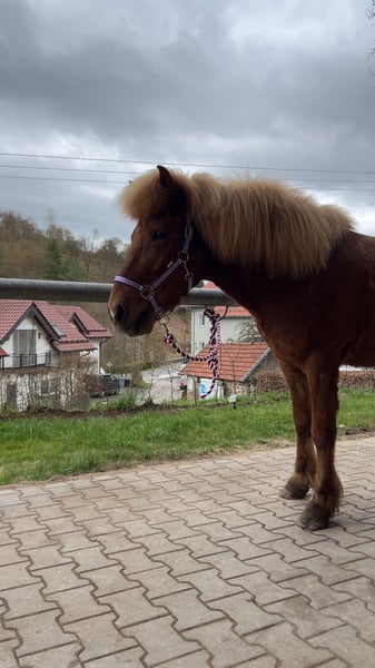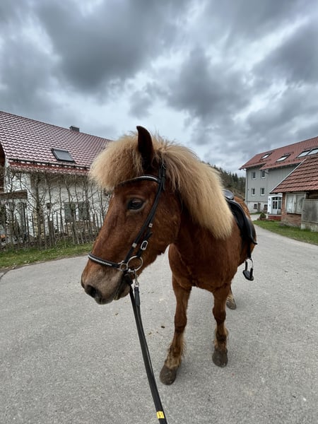 Ákafi ist ein 9 Jahre alter, großrahmiger, stabil gebauter Viergangwallach mit klar getrennten Grundgangarten. Der Tölt befindet sich aktuell noch in der weiteren Ausbildung. Unter dem Reiter präsentiert sich Ákafi stets bemüht, aufmerksam und kooperativ. Egal ob auf der Ovalbahn, dem Reitplatz, in der Halle oder im Gelände, er zeigt sich motiviert und möchte seinem Reiter gefallen. Dabei bringt er eine angenehme Arbeitseinstellung mit. Ákafi ist ein sensibles Pferd, das in neuen oder ungewohnten Situationen gelegentlich noch etwas schreckhaft/vorsichtig reagieren kann. Mit einem sicheren Reiter an seiner Seite lässt er sich jedoch gut regulieren und gewinnt zunehmend an Vertrauen. Ákafi hat bereits Turniererfahrung. Im April 26 ist er an dem Hofeigenen Qualitag in der Dressur gestartet. Durch seinen aktuellen Ausbildungsstand ist Ákafi kein Anfängerpferd. Er eignet sich besonders für fortgeschrittene Reiter, die Freude daran haben, ein Pferd weiter auszubilden und gemeinsam Fortschritte zu erarbeiten. Im Umgang zeigt sich Ákafi freundlich und unkompliziert. Er kennt die täglichen Abläufe und verhält sich dabei unauffällig und brav. Ebenso kennt er Tierarzt, Schmied und Straßen-/Landwirtschaftlichen Verkehr. Er ist regelmäßig Entwurmt, Beschlagen und geimpft worden. Ebenso hat er Ende März seine Zähne gemacht bekommen. Ákafi steht am Hof „Islandpferde von der Schmidtmühle“ in Steinau an der Straße und kann jederzeit Probegeritten werden.