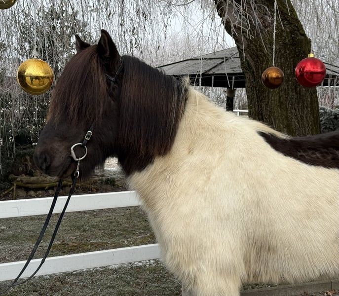 Klaki frá Miðsitju Gelding, 14.1 hh (1.45 m) *Born in Iceland in 2016 Four-gaited, with excellent movement Rapphino with plenty of feathering Has previous experience with children ✅ AKU including X-rays available ✅ VAT deductible ✅ Sire: Þristur frá Feti 8.27 (Ext. 8.14, Re. 8.35) Dam: Orri frá Þufu 8.34 (Ext. 8.08, Re. 8.61) Dam’s sire: Kotra frá Flekkudal Granddam: Otur frá Sauðárkróki 8.37 (Ext. 8.05, Re. 8.69) Klaki is an absolutely reliable partner – in daily handling, in the riding hall, on the lunge circle, and confidently and calmly in the terrain. He impresses with his balanced temperament and his calm, honest nature. He has four clearly distinguishable gaits. Especially noteworthy is his very easy-to-ride tölt and his "swinging" canter. The tölt is comfortable to sit, easily responsive, and so straightforward that even less experienced riders can tölte confidently. You could say that Klaki has almost endless tölt, which provides immense joy and comfort. His canter is also particularly remarkable, as it is so smooth and well-sprung that even the smallest riders can sit and ride it effortlessly. Thanks to his confident nature, this beautiful pinto is the ideal family horse or beginner’s horse – suitable for children as well as adults up to dad. He always provides his rider with a high level of safety and trust, making every riding session a relaxed experience. We are aware that, for a gelding, pedigree is not usually relevant for breeding. Nevertheless, we want to mention Klaki’s highly verified lineage, as his top-tier pedigree clearly demonstrates what an incredible riding horse he is. An entirely honest, relaxed gelding for everyone seeking a reliable and comfortable Icelandic horse for enjoyment and as a teaching partner. Klaki has already reliably carried children and, due to his patient nature, is also suitable for therapeutic riding. Anyone interested in meeting and trying out this beautiful gelding is welcome to arrange a visit with us in A-5221 Lochen am See.