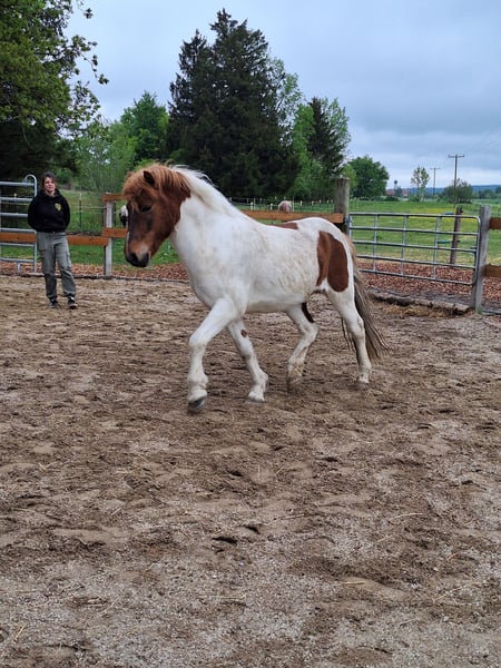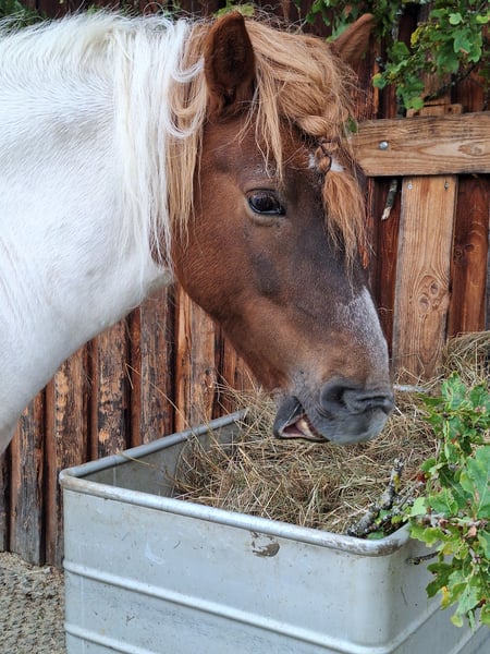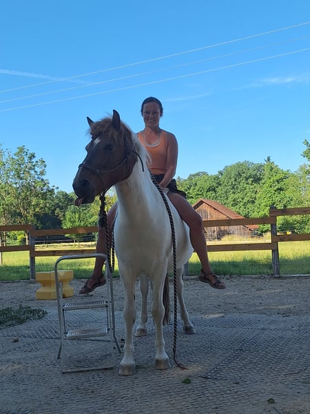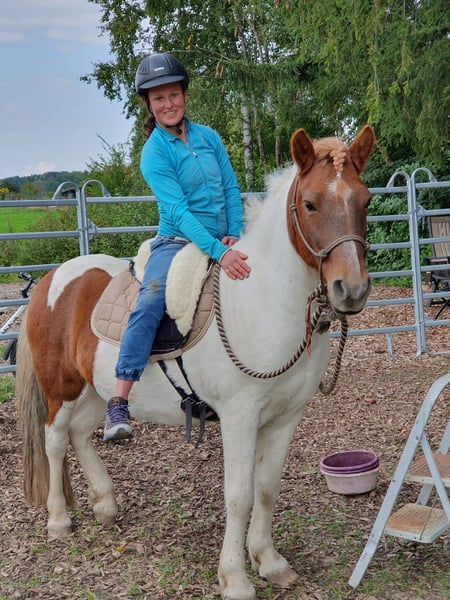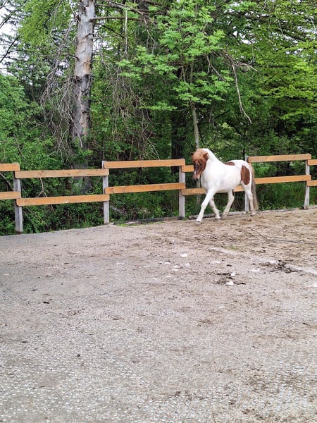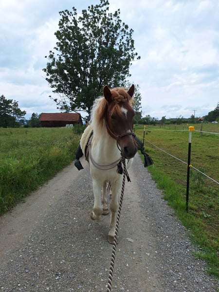 Hello everyone! I would like to introduce you to Fjölnir from Ernstweilerhof: a very kind, healthy (no eczema, asthma, etc.), affectionate gelding, chestnut pinto. Father: Taro fra Hvanneyri Mother: Fila von Land Born: July 19, 2015 in Germany (Zweibrücken) 4-gaited (currently only shows walk, trot, canter) not yet backed (has only been accustomed to rider weight so far), knows long lining, groundwork, free work, and walks (alone and in a group). I took my time with the basic training because when I got him at 7 years old, he wouldn’t even let anyone touch him and was very! skeptical of people. That has fundamentally changed, and he is the first to come to the gate and greet you. He has beautiful gaits, a great posture, and stretches forward and downward on the lunge. All traffic, farm animals, dogs, etc. are no problem! He particularly likes children and is always friendly. Now to his special character: Fjölnir needs time to build trust with a person. It requires time but above all reliability. He reacts very, very sensitively to humans (which is great for fine, minimal aids, but sometimes also gets in the way of the human). Once you have won him over, he is a true treasure. He enjoys following people and participates very well. In the herd, he is low-ranking and has gotten along with everyone so far. Fjölnir is the best scratching partner and is popular with everyone. Please only contact me if you have the time and patience/dedication for this special horse. This is, by the way, the reason I am parting with him: I no longer have enough time, and he deserves someone who can take better care of him and turn him into a reliable riding horse. I wish for him to find someone who enjoys horse training and likes going out into the countryside. I will only give him to a suitable home and if the chemistry is right. Location is 82396. Price €6,500 negotiable with complete equipment. Space before price; this is not an urgent sale. Thank you for your attention! (Feel free to share)