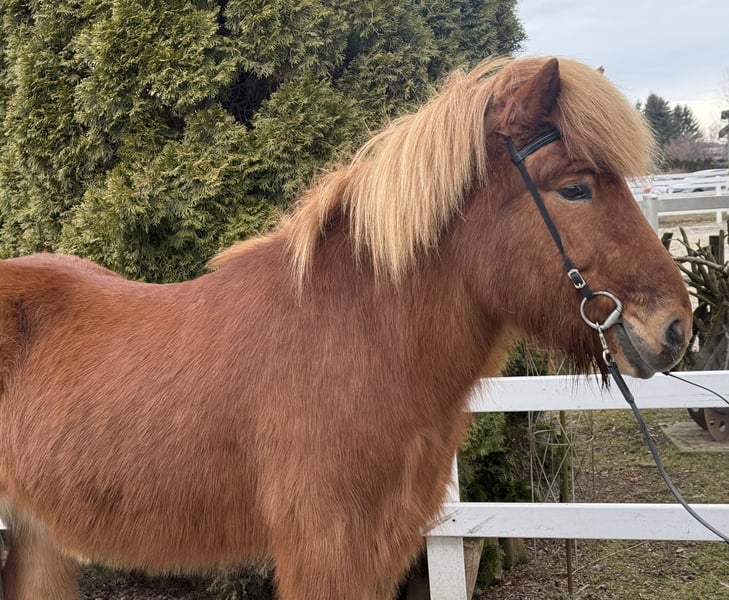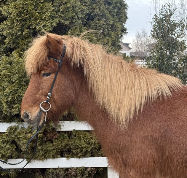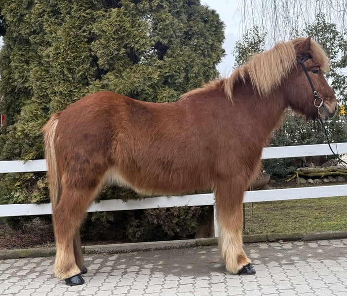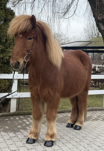 Birtingur frá Miðsitju Gelding, 1.39 m tall Chestnut with a star Four-gaited with abundant tölt AKU including X-rays available ✅ Shoed, dewormed ✅ V: Roði frá Múla 8.07 (Ext 8.30, Re 7.84) as a four-gaited, tölt 8.5‼️ VV: Orri frá Púfu 8.34 (Ext 8.08, Re 8.61) as a four-gaited, tölt 9.5‼️ M: Björk frá Múla 7.99 (Ext 7.93, Re 8.06) as a four-gaited, tölt 9.0‼️ MV: Viðar frá Viðvík 8.31 (Ext 7.99, Re 8.63) tölt 9.0‼️ Birtingur is an absolutely reliable horse – in daily handling, in the riding hall, on the lunge circle, and confidently and calmly in the field. He impresses with his balanced character and his calm, honest nature. His temperament is extremely pleasant, he is well-trained, and can be ridden via voice commands. He has four clearly distinct gaits, with his very easy-to-ride tölt being particularly noteworthy. It is smooth, easily accessible, and so straightforward that even riders with limited experience can tölte him confidently. One could say Birtingur possesses nearly endless tölt, which brings immense joy. Thanks to his secure demeanor, Birtingur is the ideal family horse or beginner’s horse – suitable for children as well as adults, even for dad. He always provides his rider with a high level of safety and confidence, making every ride a relaxed experience. We are aware that, for a gelding, pedigree is not as relevant for breeding purposes. However, we still wish to mention Birtingur’s consistently high-tested lineage, as it clearly demonstrates what an incredible riding horse he is. An utterly honest, relaxed gelding for all who seek a reliable and comfortable Icelandic horse to ride.