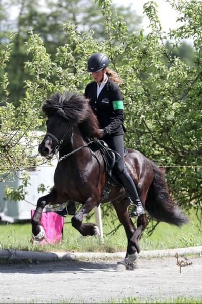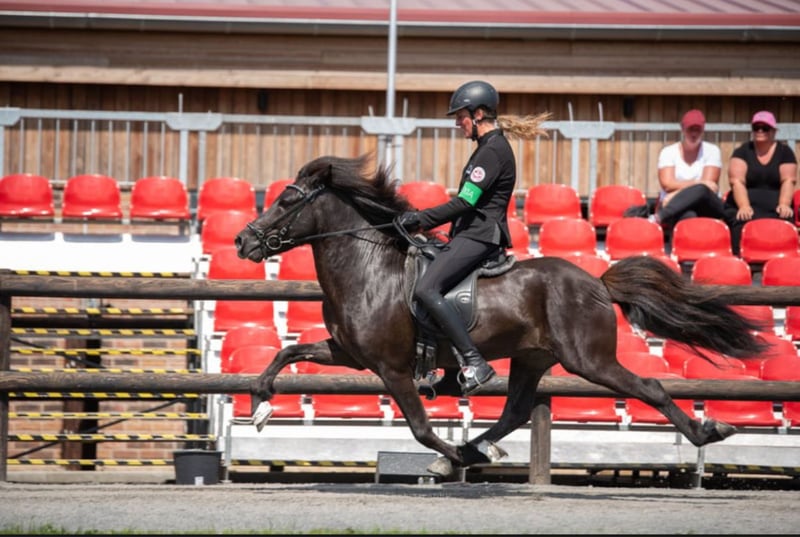 Frakkur frá Gavnholt Gelding, 1.42m tall Black with no markings Five-gaited Healthy, eczema-free, shod, dewormed Very well trained Qualified for Sport A F1 T2 Can cover all pace disciplines Participant and finalist at the MEM 2022 in F2 and T4 Sire: Muni frá Kvistum 8.17 (Ext 7.94 Re 8.31)‼️ Grandsire: Aron frá Strandarhöfði 8.54 (Ext 8.22 Re 8.75)‼️ Dam: Frökk frá Grenstanga 7.83 (Ext 8.09 Re 7.66) Granddam: Kormákur frá Kjarnholtum 8.02 (Ext 8.4 Re 7.64) 9.0 for pace‼️ Not every day do you have the opportunity to buy a horse like Frakkur. Frakkur is TOP trained. He can truly do it all. Since we place great emphasis on classical dressage, he is also excellently trained in this area and would make a very good impression in dressage tests. He participated in the Central European Championships in F2 and T4 in Austria 2022 and qualified directly for both A-finals. Frakkur is the perfect teacher for the youth; he is competition experienced and the perfect combination of fun and sport horse. During the week, you can tölting with a long rein through the forest and on weekends, fly over the oval track in racing pace. Pace is so easy to ride that he teaches less experienced pace riders without batting an eye. Entry to competitions, trainer exams, luxury leisure horse... he is truly ALL IN ONE. He can be ridden alone and in groups in the countryside and has no problems in new environments. Anyone who would like to get to know and try Frakkur is welcome to do so with us in A-5221 Lochen am See.
