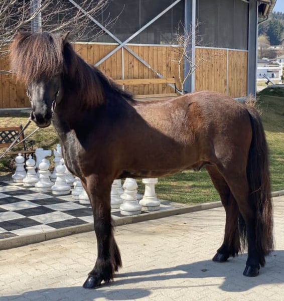 Frakkur fra Gavnholt Wallach, 1,42m groß Rappe ohne Abzeichen Fünfgänger gesund, ekzemfrei, beschlagen, entwurmt sehr gut ausgebildet Sport A qualifiziert F1 T2 kann alle Passdisziplinen abdecken Teilnehmer und Finalist auf der MEM 2022 in F2 und T4 V: Muni frá Kvistum 8,17 (Ext 7,94 Re 8,31)‼️ VV: Aron frá Strandarhöfði 8,54 (Ext 8,22 Re 8,75)‼️ M: Frökk frá Grenstanga 7,83 (Ext 8,09 Re 7,66) MV: Kormákur frá Kjarnholtum 8,02 (Ext 8,4 Re 7,64) 9,0 für Pass‼️ Nicht jeden Tag hat man die Gelegenheit ein Pferd wie Frakkur kaufen zu können. Frakkur ist TOP ausgebildet. Er kann wirklich alles. Da wir sehr viel Wert auf klassische Dressur legen, ist er auch hier bestens ausgebildet und würde auch in den Dressuraufgaben eine sehr gute Figur machen. Er ist für Österreich 2022 auf den Mitteleuropäischen Meisterschaften in der F2 und der T4 an den Start gegangen und konnte sich direkt für beide A-Finals qualifizieren. Frakkur ist der perfekte Lehrmeister für die Jugend, er ist Turniererfahren und ist die perfekte Kombination aus Spaß- und Sportpferd. Unter der Woche am langen Zügel durch den Wald tölten und am Wochenende im Rennpass über die Ovalbahn fliegen. Pass ist so einfach zu reiten, dass er es weniger erfahrenen Passreitern ohne mit dem Ohr zu zucken einfach beibringt. Turniereinstieg, Trainerprüfungen, Luxusfreizeitpferd.... er ist wirklich ALL IN ONE. Er lässt sich allein und in der Gruppe im Gelände reiten und hat keinerlei Probleme in neuen Umgebungen. Wer Frakkur kennenlernen und probieren möchte, kann dies gerne bei uns in A-5221 Lochen am See tun.