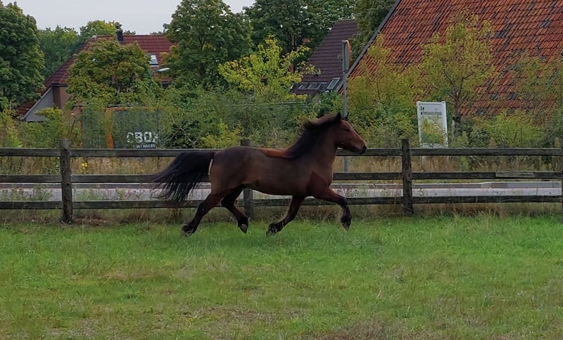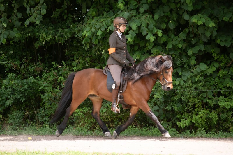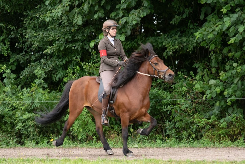 Bjór is a 12-year-old Icelandic gelding with a gentle temperament. He is 99.9% traffic-safe and truly very reliable. He has four clearly separated gaits, all of which he performs easily. He has a pleasant tölt and can reach a high pace. He is a true all-rounder, having competed in shows, enjoyed leisure riding, and even been used as a lead horse – all no problem. He is somewhat sensitive to sugars, so a proper feeding and pasture management is essential.