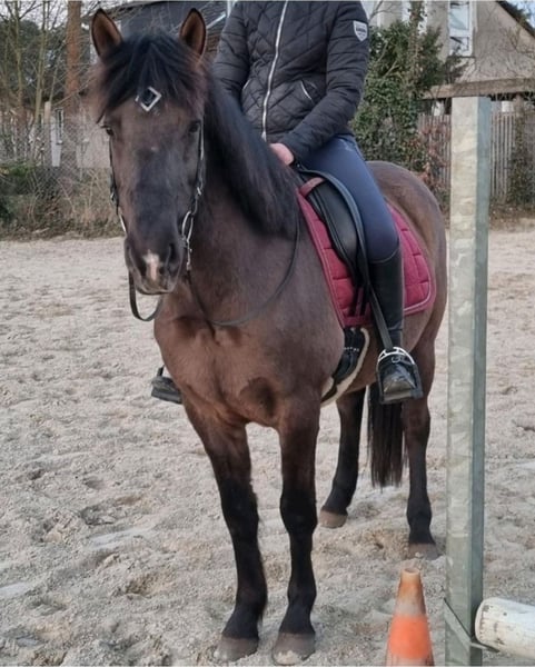 11 Jähriger Isi Konik Mix, 1.51m gross, Rappfalbe in allerbeste Hände abzugeben. Unser Schoki geht gerne ins Gelände und ist alleine und in der Gruppe super unerschrocken. Er kennt Hauptverkehrsstrassen und ist Trubel gewöhnt. Auf dem Reitplatz und in der Reithalle kommt leider sein Ponykopf durch. Wer hier gut reiten kann hat keine Probleme, dann läuft er artig an den Hilfen um die Runde. Bei Anfängern bleibt er gerne stehen. Im Gelände ist er wie eine Lebensversicherung und passt auf sein ReiterIn auf. Rassetypisch sehr sitzbequem. Schoki steht bei uns im Offenstall und auf der Weide. Box kennt er auch, findet er manchmal kurz auch gut. Im Umgang ist Schoki auch brav und unerschrocken, aber hat auch hier gerne mal ein Ponykopf wenn er was schönes zu Essen sieht. Sofern man sich gut durchsetzen kann und die dominantere Persönlichkeit hat, hat man keine Probleme. Wir wünschen uns Jemanden der erfahren ist, wo er in einem Offenstall leben darf und viel ins Gelände darf. Nicht als Kinderpony geeignet. Auf keine Fall Turniere. Im Umgang mit anderen Pferden ist er sehr lieb und unkompliziert bei uns. Aus persönlichen Gründen, nur in allerbeste Hände abzugeben.