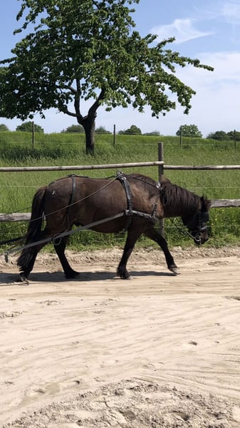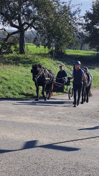 Hektor ist ein dreigängiger Wallach, eigentlich wollte ich Therapie als erste Eignung angeben, aber das gab es nicht. Auch an der Kutsche läuft er gut. Hektor ist immer gemütlich unterwegs.