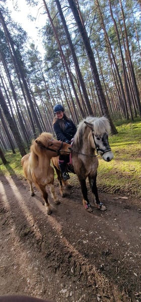 Islandpony – voorwaardelijk berijdbare bijrijder Belangrijke gegevens * IJslander, ruin * 19 jaar * Stockmaat ca. 1,31 m * Locatie: 91174 Spalt * Driegangen (stap, draf, galop) De ruin Noi van Felsquellhof is een zeer vriendelijke, mensgerichte IJslander en in de dagelijkse omgang absoluut braaf. Kinderen kunnen hem probleemloos leiden, poetsen en mee wandelen. Ook rijden onder begeleiding is mogelijk. Hij gaat graag alleen of in een groep wandelen en loopt ook betrouwbaar mee als handpaard. Basiswerk, longe, vrijlopen + springen, handwerk en kleine trails kent hij. Hij is voorwaardelijk berijdbaar en uitsluitend geschikt voor rustige, ervaren en gevoelige ruiters. Geen paard voor beginners, angstige ruiters, herintreders of kinderen. Hij is bekend met: * Buitenritten (solo en in groep) * Rijbaan * Indoor rijbak * Ovale piste Tijdens het rijden vertoont hij af en toe onzekerheden en kan af en toe struikelen. Hij reageert gevoelig op druk, waardoor hij zich soms zelf opjaagt. Daarom alleen geschikt voor ervaren ruiters met veel gevoel en rust. Hij heeft equin astma en allergieën, maar is bij ons symptomvrij onder management (inhalatie en cetirizine). Hij heeft een allergievriendelijke huisvesting nodig of een regio met berglucht of nabijheid van meren. Geen ekzem. Verschroeiing: bekend met volledig hoefbeslag, duplos en barhuf. Geïmmuniseerd tegen herpes, influenza en tetanus. Tanden jaarlijks gecontroleerd (laatste keer in april 2025). We kunnen ons hem goed voorstellen als metgezel voor andere paarden of als opvoeder voor jonge paarden. Alternatief een ontspannen, lichte ruiter die niet teveel waarde hecht aan het rijden. Hij zou ook geschikt kunnen zijn voor begeleide buitenritten of kindertherapie. Plaats gaat voor prijs. Geen verkoop aan rijscholen, handelaren of soortgelijke partijen.