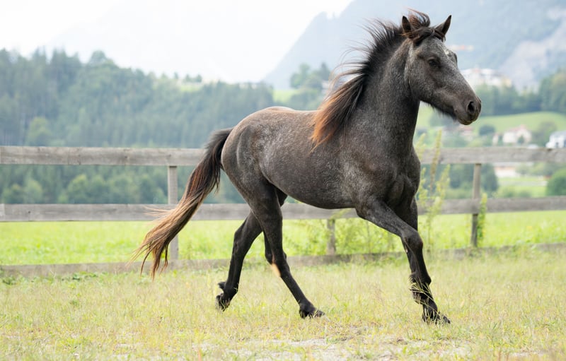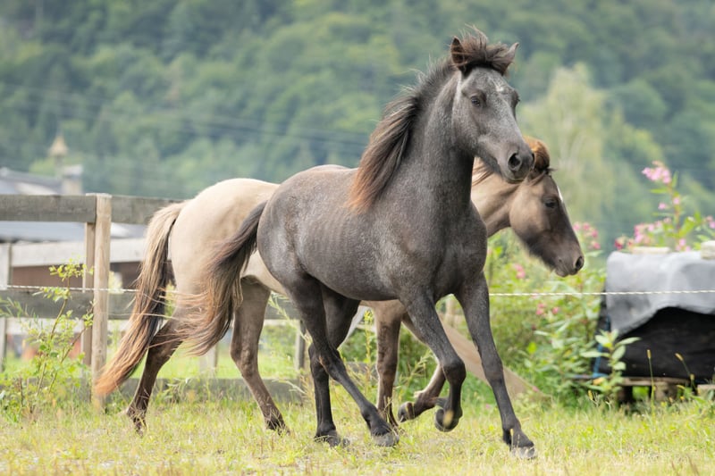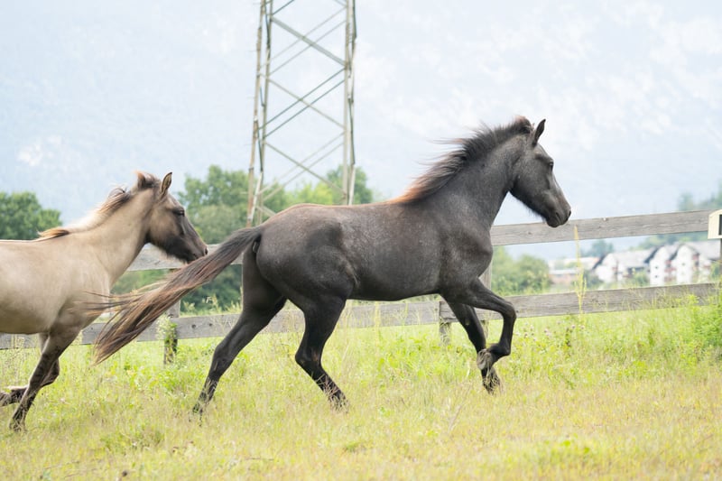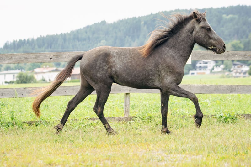 Pegasus vom Grattenbergl V: Váli frá Selfossi (Fizo 8,01) VV: Oõur frá Brún M: Heilladís vom Thierseetal MV: Hausti frá Kagaõarhóli (Fizo 8,53) Der ausdrucksstarke Wallach ist am 13.05.2023 als Rappe geboren, zeigt jedoch die typische Farbaufhellung eines Schimmels. Pegasus ist regelmäßig entwurmt und geimpft. Er ist dem Menschen stets zugewandt, neugierig und selbstbewusst, dabei aber nicht aufdringlich. Pegasus kennt das Fohlen ABC und wurde schonend abgesetzt. Er hat ein korrektes, harmonisches Gebäude bei gutem Temperament, woraus man darauf schließen kann, dass er aufgrund seiner hohen Tempovarianz auch für den Sport interessant sein wird. Pegasus ist 5 gängig veranlagt, zeigt freilaufend alle Gänge mit viel sprudelndem Tölt. Er wächst auf Bergwiesen auf und ist seit seinem ersten Tag im Gelände unterwegs, was für starke Bänder, Sehnen und Trittsicherheit sorgt. Gerne kann er unter vorheriger Absprache besucht und kennengelernt werden. Sein Preis steigt dem Alter entsprechend. Wenn jemand an dem hübschen Charmeur interessiert ist, freue ich mich über eure Nachrichten.