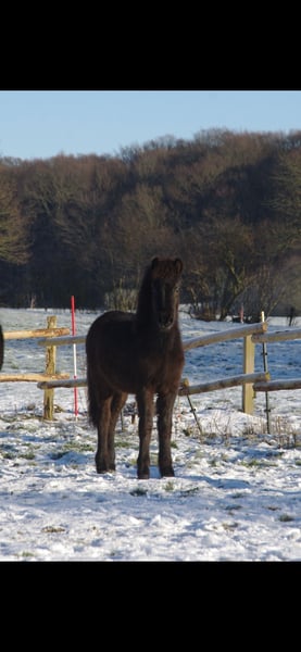 Blómi von Eldhólar (DE2021122997) V: Skarði vom Vindstaðir (Zuchtweltmeister, 8,22 ges.) M: Blíða von Eldhólar MV: Þórarinn frá Oddhóli (8,17 ges., u.a. Bis 6,67 in F1) Blómi ist ein absolut freundlicher kleiner Fünfgangwallach, der einem das Herz aufgehen lässt! Er ist in jeder Lebenslage für seine vier Jahre sehr cool und gelassen und bildet einen Ruhepol in seiner Junghengstherde. Er zeigt alle 5 Gänge mit sehr guter Qualität, damit sieht man später auf Turnieren bestimmt auch nicht schlecht aus! Blómi kann alles, was man mit vier Jahren können muss (Aufhalftern, Führen, Hufschmied, Tierarzt, etc.) Wenn er ausgebildet ist, wird er bestimmt das perfekte Kinder-/Familienpferd, er ist einfach so brav und liebt es Menschen um sich zu haben, die sich mit ihm beschäftigen, ohne dabei aufdringlich zu werden! Da er eher etwas kleiner ist (ca. 1,33 m) kommt er vermutlich eher für zierliche Erwachsene oder Kinder/Jugendliche in Frage. Er ist aber mit seinen 4 Jahren natürlich auch noch nicht voll entwickelt! Aktuell steht er noch in einer Junghengstherde in der Nähe von Cuxhaven und kann nach Absprache besichtigt werden. Auf Wunsch besteht auch die Möglichkeit, dass ich Blómi noch ausbilde und auf seine neue anstehende Aufgabe perfekt vorbereite! Ich bin gelernte Pferdewirtin Spezialreitweisen und IPZV Trainer C, arbeite seit langer Zeit als Islandpferde Trainerin und habe mich auf die Jungpferdearbeit spezialisiert. Leider hatte Blómi im Frühjahr eine Verletzung durch ein stumpfes Trauma an einem Auge, er kann sehen, aber es ist nicht 100% klar, wie es in Zukunft aussehen wird. Es ist aber tierärztlich bestätigt, dass normal er nutzbar sein wird, dem Start ins Reitpferdeleben steht also nichts im Weg. Deswegen wird er aber weit unter Wert abgegeben!! Tierärztlicher Bericht zum Befund des Auges liegt vor. Bei Fragen etc einfach gerne eine PN schreiben! Es handelt sich hier um einen Privatverkauf!