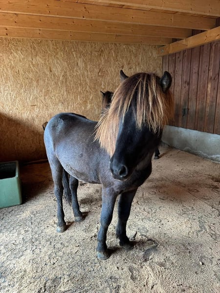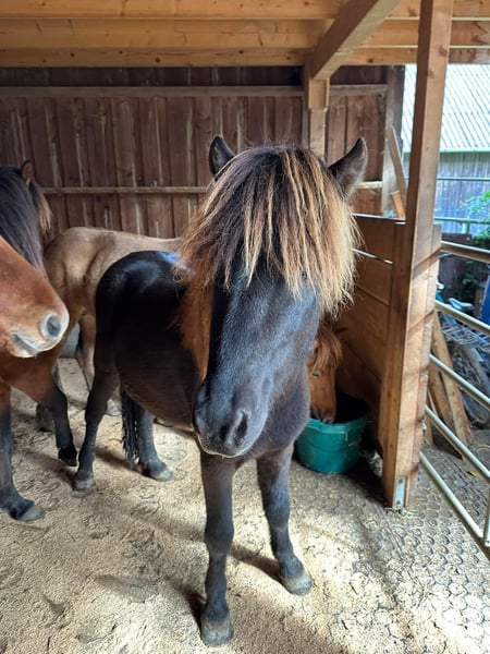 Sirius von Möllenbronn is a 3-year-old Erpur frá Brimnesi (Sire: Örn frá Brimnesi, Dam's Sire: Spuni frá Vesturkoti) son out of a Lukka-Laki daughter, who was assessed as Elite for conformation at the age of 4. Sirius is a very friendly and positive horse and displays five gaits. He is of a rather robust type. When free-running, he shows all gaits. Sirius is regularly vaccinated and dewormed with us and is growing up in a young horse herd. Foal evaluation: Conformation: 8.0 Interior: 7.9 Gait: 7.8 Overall: 7.88 Judge's statement: Moderately well-built 5-gaited foal with good gait distribution, a lot of clear, smooth natural tölt, and a friendly, brave interior.