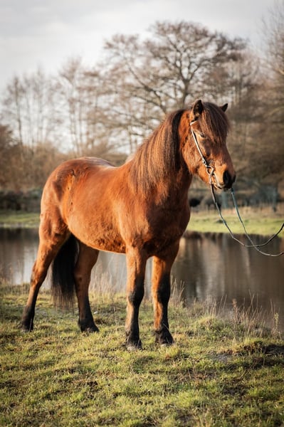 Beschreibung: Wunderschöner 5-jähriger Wallach mit Traumcharakter. Klokkur vom Kranichtal ist ein wunderschöner fünfjähriger Wallach mit einem außergewöhnlich angenehmen Charakter. Von Anfang an zeigt er sich sehr abgeklärt, freundlich und dem Menschen zugewandt. Er ist unkompliziert im täglichen Umgang, aufmerksam und stets bemüht, alles richtig zu machen. Exterieur: Er ist groß und kräftig gebaut, dabei kompakt und mit sehr guten Proportionen. Durch seinen harmonischen Körperbau ist er ein angenehmer Gewichtsträger. Charakter: Klókur überzeugt durch sein ruhiges, kooperatives Wesen. Er ist sehr lernwillig, arbeitet gerne mit dem Menschen zusammen und zeigt sich stets zuverlässig und ausgeglichen. Sein freundlicher Charakter macht ihn zu einem echten Partner im täglichen Umgang. Gänge: Klókur ist ein schöner Viergänger mit gut getrennten Gängen und angenehmem Takt. Er lässt sich bequem reiten und bringt bei weiterer Ausbildung durchaus Potenzial für den Jugendsport mit. Ausbildungsstand: Klókur hat die Grundausbildung bereits absolviert und ist eingeritten. Er kennt Halle, Reitplatz sowie das Gelände und zeigt sich dabei stets brav, aufmerksam und kooperativ. Durch seine Lernbereitschaft lässt er sich sehr gut weiter fördern. Wer passt zu mir: Durch seinen ausgeglichenen und unkomplizierten Charakter passt Klókur ideal in eine Familie. Er eignet sich sowohl für Freizeitreiter als auch für Jugendliche mit sportlichen Ambitionen. Aufgrund seiner Statur ist er auch gut als Gewichtsträger geeignet und wäre perspektivisch ebenfalls für Reitschul- oder Therapiebetriebe denkbar. Vater: Außergewöhnlicher Fünfgänger. 3-facher WM-Teilnehmer. Naddur vom Schluensee ist ein großer Fizo-Elite geprüfter Rapphengst, der seine hervorragende Qualität auch schon bei etlichen nationalen wie internationalen Meisterschaften bewiesen hat. 2015 und 2017 startete er auf der Weltmeisterschaft. Aber nicht nur er selbst ist hocherfolgreich im Sport unterwegs gewesen, auch seine Nachzucht kann sich schon mit Meisterehren schmücken (unter anderem die deutsche Meisterin im Töltpreis Náttrun vom Forstwald). Zudem verfügt Naddur über einen außerordentlich freundlichen Charakter, den er seinen Nachkommen mitgibt. Mutter: Wunderschöne, leichtfüßige Tölt-Tänzerin, wir nennen sie auch unsere Ballerina. Kolka überzeugt durch ihr ansprechendes Exterieur, ihre Leichtrittigkeit sowie ihren freundlichen Charakter. Pflegezustand: Klókur befindet sich in einem sehr guten Futter- und Pflegezustand. Sonstiges: Er stammt aus einer ekzemfreien Elternlinie und ist selbst ebenfalls ekzemfrei.