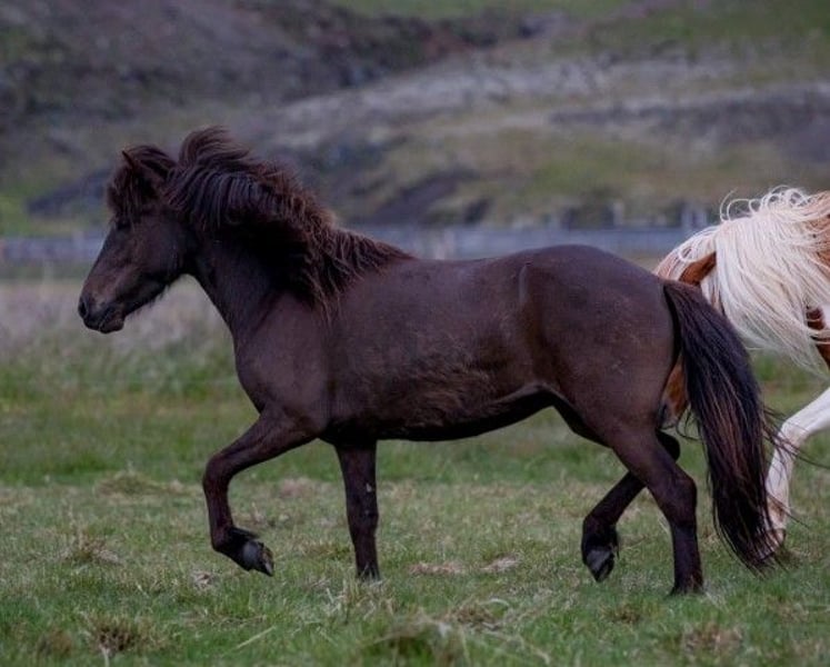 Nóva frá Sölvholti Abstammung: IS2020287378 Stute aus 2020 tragend von Máni frá Votmúla 2, IS2021187611 Farbe: Rappe Ausbildung: angeritten Nova ist eine freundliche dem Menschen sehr zugewandte Stute mit kräftigem Exterieur aber vom Typ alten Isländer. Mit rund 1,32 kommt die "Kleine" unter dem Sattel gut rüber, weil sie eine sehr hohe Aufrichtung hat. Auch sonst macht es Spass, mit ihr zu Arbeiten. Sie hat derzeit ein tolles Fohlen bei Fuss (bereits verkauft) und ist von einem netten Buckskin-Junghengst tragend für 2026 geschallt. Wer also ein Reitpferd sucht und gleich ein Nachwuchspferd dazu (vielleicht für den eigenen Nachwuchs), für den wäre dieses "kleine" Zuchtpaket durchaus interessant. Im Umgang ist sie unkompliziert, in der Herde sozial. Ein tolles zukünftiges Herzens- Familienpferd. ========================= Preis: EUR 2.300,00 ab Island weitere Informationen und Video auf Anfrage