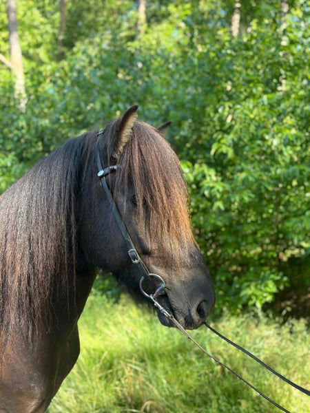 Der auffallend schöne Rappe ist ein Halbbruder zu unserem Deckhengst Apollo von Seppensen, aus deren Mutter wir schon einige schöne Fohlen mit traumhaften Charakter und gutem Gangvermögen züchten konnten. Kjarni besitzt viel Langhaar und eine ausdrucksstarke Erscheinung. Der junge Wallach verfügt über eine klare Gangtrennung, einen gut gesprungenen Galopp und weite Bewegungen im Trab. Zur Zeit wird Kjarni eingetöltet und zeigt sich auch hier vielversprechend. Er geht alleine und in der Gruppe ins Gelände und besitzt auch hier ein angenehmes Temperament. Auf Grund seines mutigen und unerschrockenen Wesens, können wir ihn uns später auch für Anfänger und Kinder vorstellen. Kjarni wird jedem eine Freude bereiten und wird bei weiterer Ausbildung sicherlich auch auf dem Turnier eine gute Figur machen.