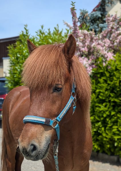 Blævar ist ein absolutes Traumpferd für jede/n Freizeitreiter/in! Er ist immer freundlich, kooperativ und unerschrocken und freut sich wenn man ihn rausholt. Er hat die Grundausbildung abgeschlossen und kennt freilaufen, longieren, Handpferdereiten, reiten in der Halle und im Gelände (alleine und zu zweit). Egal was man mit ihm macht, ist er einfach immer total unkompliziert. Er hat mittleres Temperament (nicht faul und nicht hektisch )und gut getrennte bequeme Gänge. Er ist fünfgängig und hat viel Tölt, wurde aber bisher dreigängig geritten. Er hat ein haromisches Gebäude und ist elegant gebaut mit stabilem Fundament. Er ist ekzemfrei, schmiede- und verladefromm. Blævar wurde als Fohlen bewertet mit 7,96 (Exterieur 8,20; Interieur 8,0; Gänge 7,8). Richterspruch: Fleißiges, aufmerksames Fünfgang Fohlen mit lockeren Gängen, gut mittleren Bewegungen, viel Tölt und sehr elegantem, gut bemuskeltem Gebäude. Als 4-jähriger hat er eine Gebäude-FIZO absolviert und hat für alle Merkmale 7,5 (Durchschitt) und 8,0 (gut) erhalten. Stark im Preis reduziert, da Blævar nach einer subklinischen Infektion leider eine geringgradige Herzinsuffizienz entwickelt hat. Er ist dadurch nicht beeinträchtigt, braucht keine Medikamente und ist voll leistungsfähg. Er kann jederzeit Probe geritten werden. Ich wünsche mir für Blævar einen Menschen, der ein Pferd mit dem allerbesten Charakter ebenso zu schätzen weiß wie eine schonende, pferdegerechte Ausbildung. Er hat ein Herz aus Gold. Nur in allerbeste Hände, Platz vor Preis.