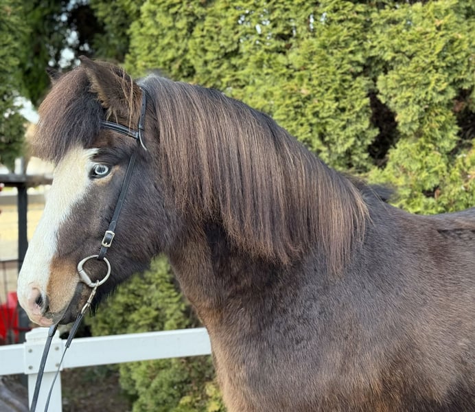 Lukku-Blesi du Háleggstöðum Hongre, 1,50 m au garrot 🤩 *2019 en Island Quatre allures avec Tölt sans fin AKU et radiographies disponibles ✅ Dents traitées en décembre 2025 ✅ Vacciné, ferré, déparasité ✅ Père : Bruðgumi du Háleggstöðum Mère : Skelfing du Háleggstöðum Sire : Strákur de Vatnsleysu Grand-père : Nökkvi de Kjalarland (8,29) (Ext 8,09 / Re 8,41)‼️ Lukku-Blesi est un hongre ultra fiable, qui porte son cavalier où il veut. Après une séance de Tölt détendu en terrain varié ou pour se détendre lors d’une longue promenade au pas, il est parfait. Le week-end, il peut suivre un stage ou même participer à une compétition – Blesi est toujours partant ! Monté en quatre allures, il montre un bon pas, un bon trot, un galop sautillant et un Tölt toujours régulier, facile à gérer. Même un cavalier expérimenté en Tölt pourra le demander et en profiter sans difficulté. 😌 Il appartient à la catégorie « BOMBPROOF » et reste calme face à presque tout. Avant de partir au galop, il préfère souvent s’arrêter et examiner un « objet inconnu » de près – après tout, cela pourrait être comestible 😅 Un hongre de six ans, grand, magnifique, qui mérite qu’on lui trouve une nouvelle vie ! Un « Wow, qu’il est beau » de la part des autres cavaliers du manège est garanti pour ce cheval exceptionnel ! Si vous souhaitez faire connaissance avec ce beau hongre ou le tester, n’hésitez pas à nous contacter pour une visite à A-5221 Lochen am See.