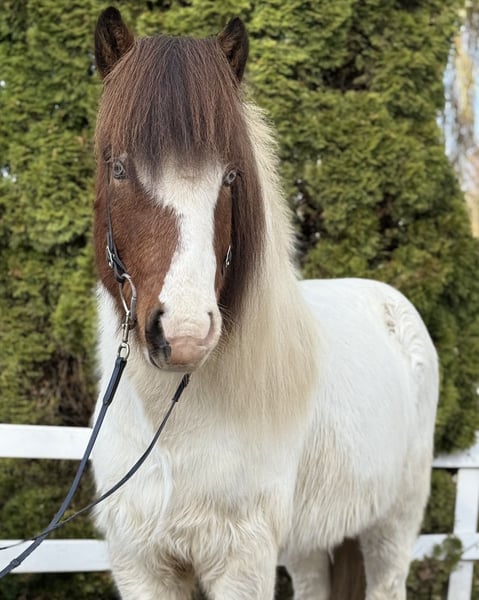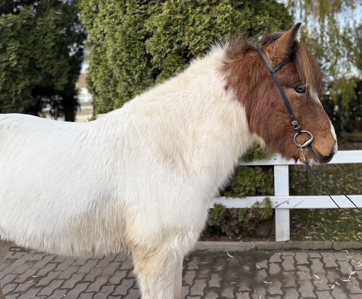 Snær frá Bakkakoti Wallach, 1,38m *2018 in Island Fünfgänger, viergängig geritten Farbe: Braunschecke mit zwei blauen Augen AKU inkl. Röntgen vorhanden, Zähne gemacht MwSt. ausweisbar V: Vésteinn frá Bakkakoti 8,29 ( Ext 8,17 Re 8,35) MV: Ómur frá Kvistum 8,61 (Ext 8,24 Re 8,85) M: Silja frá Sydra-Skördugili MV: Hjálmar frá Vatnsleysu Der wunderschöne Snær sucht ein liebevolles neues Zuhause. Mit seiner langen, dichten Mähne, seinem sanften Wesen und seinem klaren Gangvermögen ist er ein Pferd, welches man nicht jeden Tag findet. Snær ist ein ausgesprochen braver, verlässlicher und völlig unerschrockener Wallach. Er ist eher zu treiben als zu stürmisch, bleibt stets gelassen und vermittelt seinem Reiter ein hohes Maß an Sicherheit. Dank seines ruhigen Temperaments und seiner feinfühligen Art eignet er sich hervorragend als: Therapie- und Familienpferd. Er ist der perfekte Reitbegleiter für Einsteiger, Wiedereinsteiger oder eher nervöse Reiter. Snær ist viergängig geritten und bringt deutliches Potenzial für den Sportbereich C mit. Sein Gangmaterial ist klar getrennt, taktrein und angenehm zu sitzen – ein Pferd, das man einfach gerne reitet. Tölt ist so einfach zu reiten, dass auch ein unerfahrener Reiter oder Kinder, diesen mühelos abrufen können. Snær stammt aus einer leistungsstarken Islandpferde-Linie und das spiegelt sich in Charakter und Gang. Snær ist ein absolutes Traumpferd – ein verlässlicher Partner mit tollem Gangmaterial, geeignet für Sport, Freizeit und Therapie. Ein Pferd, das man sofort ins Herz schließt. In A-5221 Lochen am See kann der hübsche Wallach jederzeit kennengelernt und probiert werden. Weitere Fotos und Videos senden wir gerne per WhatsApp.