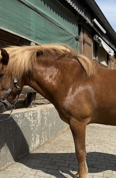 Isak est un hongre islandais de 6 ans, de robe alezane foncée. Il possède une constitution solide et musclée. Non seulement son apparence est magnifique, mais son caractère est également irréprochable. Il sera un compagnon fidèle, amical et surtout très loyal ! Je pourrais également l’imaginer comme cheval de famille. Il est sociable, bien éduqué et calme au quotidien. Cependant, il a suffisamment de tempérament dès qu’il s’agit de travailler. Il travaille avec dynamisme et aime apprendre et découvrir de nouvelles choses. Je l’ai déjà formé avec douceur. Avant cela, il a été élevé de manière adaptée dans un troupeau. Il peut être monté librement en rond de longe et répond très finement à la voix dans toutes les situations. Il connaît également la monte avec selle et bridon. Il possède de bonnes bases en travail à pied et en liberté. En extérieur, il peut se promener en groupe ou seul, même pendant plusieurs heures. Les balades sans selle sont aussi très agréables avec lui ! Sur le manège, il peut évoluer dans toutes les allures. Il est 4-gangers et montre toutes les allures. Le dérobement, le coup de pied ou la morsure sont pour lui des mots étrangers ! Il est en parfaite santé, sans allergies, eczéma ou autres soucis. Il connaît le box comme l’herbage en paddock. Pour toute question ou intérêt, n’hésitez pas à me contacter. Des vidéos sont disponibles. Une mise en selle d’essai est possible.