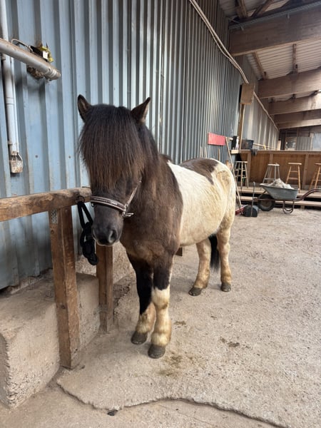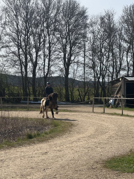 - 6 years old - from Iceland (no eczema) - 15.0 hh - four-gaited - pinto - Farrier and loading friendly He is mainly ridden for leisure and enjoys hacking. With further training, he could also be suitable for competitions. His tölt is very smooth to ride. Lunging and round pen work are not his preference; he prefers going out into the terrain. In handling, he is a very sweet and well-behaved horse. His teeth have been recently floated, and he is familiar with osteopathic treatments. Additional pictures and videos available upon request.