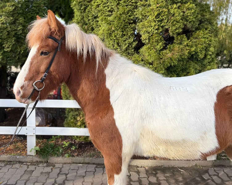 Gígjar frá Flögu Wallach, 144 cm *2018 in Island Viergänger Fuchsschecke Beschlagen, geimpft und entwurmt V: Mugison frá Hæli 8,55 (Ext 8,46 Re 8,61)‼️ VV: Spuni frá Vesturkoti 8,92 (Ext 8,43 Re 9,25)‼️ M: Gæfa frá Flögu 7,88 (Ext 7,52 Re 8,12) MV: Kolfinnur frá Kjarnholtum II 8,45 (Ext 8,05 Re 8,84) ‼️ Der schöne Gigjar gehört mit 144m Stockmaß und seinem stabilen Gebäude zu den größeren seiner Rasse und dann noch kombiniert mit einer bombastischen Abstammung überzeugt er als Gesamtpaket. Sein Vater hoch geprüft und sein Opa „Spuni frá Vesturkoti“ wohl jedem ein Begriff, der sich etwas mit der Zucht beschäftigt. Sowie auch der Opa mütterlicherseits ist hoch geprüft und lässt Züchterherzen höher schlagen. Dank seiner Vorfahren hat er ganz klar getrennten vier Gänge von sehr guter Qualität, die stets einfach zu reiten sind und mit sehr ansprechender Bewegung überzeugen. Mit einem ambitionierten Reiter kann Gigjar definitiv im Sport Viergang und Tölt punkten. Sein Temperament ist perfekt: nicht zu flott, nicht so langsam, nicht zu stumpf und auch nicht zu sensibel. Aufgrund seines freundlichen und höflichen Wesen eignet er sich auch perfekt als Luxusfreizeitpferd. Gígjar ist stets motiviert und freudig bei der Arbeit, sei es auf der Bahn, im Viereck, in der Halle oder im Gelände. Er steht aktuell bei uns in einer Paddokbox mit einem Kumpel gemeinsam und zeigt sich dabei total unkompliziert. Auch in der Herde fühlt er sich pudelwohl. Preisrahmen 15.000€ - 17.000€ Wer also einen super lieben Allrounder in Sonderlackierung kennenlernen und probieren möchte kann dies gerne nach Absprache in A-5221 Lochen am See tun.