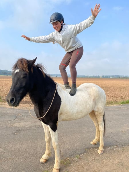 ✨ Islandpferd Skjóni – treuer Schecke mit Herz sucht neues Zuhause ✨ Unser hübscher, groß gewachsener Schecke Skjóni ist auf der Suche nach einem neuen Menschen, der mit ihm viele schöne Erlebnisse teilt. Mit seinem freundlichen Wesen und seiner besonderen Ausstrahlung hat er uns von Anfang an begeistert. Skjóni ist stehts mutig und nervenstark und ihn bringt so schnell nichts aus der Ruhe. 🐴 Ein echter Verlasspartner Skjóni ist ein Pferd, auf das man sich verlassen kann. Ob allein im Gelände, in der Gruppe, auf dem Platz oder im Straßenverkehr, Strandritt, Halsringreiten, Stoppelfeldgalopp– er bleibt stets ruhig und gelassen. Besonders sein immer taktklarer Tölt macht ihn zu einem wahren Vergnügen im Sattel. Er ist leicht zu reiten und vermittelt jedem Reiter ein sicheres Gefühl. 👧 Lehrmeister & Freund Skjóni war das erste eigene Pferd seiner jetzigen jungen Besitzerin. Gemeinsam haben sie viel gelernt, und er hat ihr stets Sicherheit, Freude und Vertrauen gegeben. Nun ist die Zeit gekommen, dass er eine neue Familie oder einen neuen Menschen glücklich macht. 🌟 Für wen ist Skjóni der Richtige? Er eignet sich ideal für Reiter, die sich einen unkomplizierten, freundlichen und treuen Begleiter wünschen – sei es als Familienpferd, für Jugendliche mit Erfahrung oder für alle, die ein zuverlässiges Freizeitpferd suchen, das mit seinem Wesen und seiner Schönheit überzeugt. ➡️ Skjóni wartet darauf, neue Wege zu gehen und seinem nächsten Menschen genauso viel Freude zu schenken, wie er es bereits getan hat.