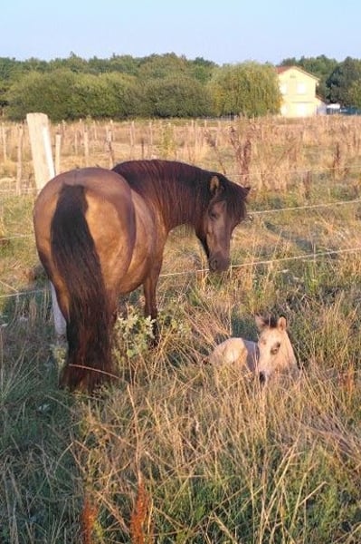 Propose a la réservation poulain hongre né début aout . PRIMUS sera disponible au sevrage fin mars/début avril. Il a une suberbe robe Isabelle ND1(légères traces primitives,raie de mule) . Sa mère est noire ND1 et son papa est isabelle silver dun . Sa taille estimée adulte est de 1m38. Il sera donc grand C. Tout comme ses parents il sera porteur et pourra être monter par un adulte sans soucis! Il est plein papier IS et peut donc a ce titre prétendre aux concours. PRIMUS a 5 allures (pas,trot, tolt, galop, amble) 2900€ Il vit au pré avec juments, entier et poulains de son age . Il respecte les clôtures et apprend gentiment l'ABC du poulain de son age. Il est de nature curieux et assez indépendant pour son age ! Il aime la compagnie humaine et vient chercher les grattouilles. Un jeune cheval demande expérience ou encadrement . D'autres photos sont disponibles sur demande.