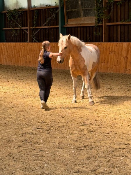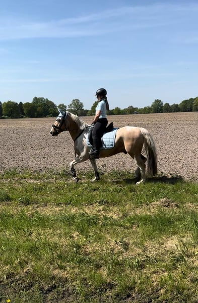 Wir müssen uns leider schweren Herzens von unserem 14 Jahre altem Pony Paulchen trennen. Er war das erste eigene Pony für unsere Tochter,aber jetzt möchte sie weiter kommen und somit suchen wir ein neues Zuhause für ihn. Sie ist mit ihm Reiter-wb,Springreiter,e-Springen geritten. Ausreiten ,in der Gruppe über die Rennbahn,mit Pad übern Platz knattern usw,für quatsch machen ist er immer zu haben. Vor der Kutsche war er bei den Vorbesitzern früher auch. Im Umgang ist er manchmal ein Schlawiner,deswegen wird er mit Kettenhalfter geführt. Kein reines Kinder oder Anfänger Pony,deckt gut Erwachsene ab,kräftig gebaut und 1,48 m groß. Letztes Jahr im Frühjahr war er vorne rechts lahm,dort wurde eine Arthrose diagnostiziert und in der Tierklinik Telgte behandelt. Springen sollte er somit nicht mehr. Er ist Ekzemer,im Sommer steht er bei uns 24std draussen und trägt dann Fliegenmütze und Decke,die wir mitgeben würden. Sollte das Heu sehr staubig sein,kann er mal anhusten. Vor ca 3 Monaten war er hinten links lahm,wahrscheinlich ne Zerrung,vertreten oder ähnliches,ganze Bein geröntgt,nichts gefunden. Weitere Infos Videos gerne per Nachricht oder einfach vorbei kommen und den Schlawiner kennenlernen.