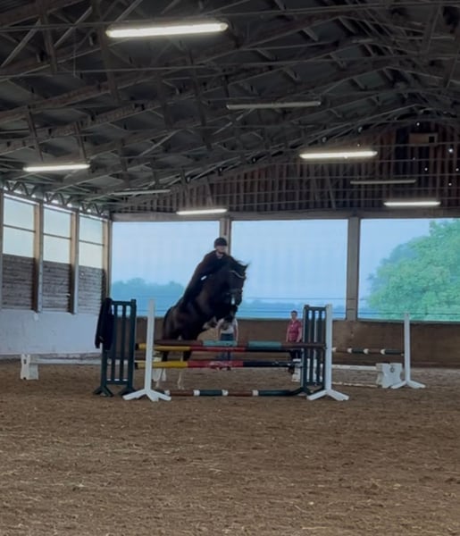 Zuverlässiger Lehrmeister mit Herz zu Verkaufen. Zum Verkauf steht unser 2008 geborener Wallach Mantis. Mantis hat einen Stockmaß von ca.1,54m. Mantis ist ein sehr erhliches, verlässliches Springpferd,mit viel Potential und Motivation. Im Pacour trägt er ein mit leichtig keit und liebt es gut abzuschneiden und zu zeigen was er kann. Er ist auf Turnier mit mir bis zur Klasse A** gelaufen. Er kann manchmal etwas Hecktisch beim Springen sein, aber trotzdem ist er gut händelbar und rittig. Gelände reiten ist bei ihm auch kein Problem, jedoch muss man ihm bei Galloppieren manchmal etwas zurück halten Mantis wird bei uns nur im Offenstall gehalten und steht Problem los mit anderen Pferden zusammen.