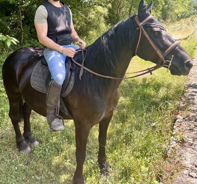 Aufgrund privater Veränderungen und fehlender Zeit für Training suchen wir schweren Herzens einen neuen Lebensplatz für unsere 11-jährige Merens-Stute. Sie ist 1,55m groß, geimpft, entwurmt und gesund. Equidenpass ist vorhanden. Sie ist eine liebe, aber charakterstarke Stute. Sie benötigt einen erfahrenen und einfühlsamen Menschen, da sie Unsicherheiten schnell bemerkt. Sie ist freizeitmäßig geritten und kann ein bis vierspännig gefahren werden, kennt Offenstallhaltung und Boxenhaltung. Wir würden Sie allerdings eher in Offenstallhaltung sehen. Sie kennt gemischte Herden, fährt sehr gut Anhänger und ist brav im Gelände. Sie läuft aktuell barhuf, da sie bei uns nicht in der Kutsche lief, war aber vor etwa einem Jahr noch beschlagen. Sie wird nicht abgegeben an Händler und Reitschulen. Sie ist kein Kinder- oder Anfängerpferd. Wir möchten dass sie in gute Hände kommt und suchen ein liebevolles Fürimmer-Zuhause für sie.
