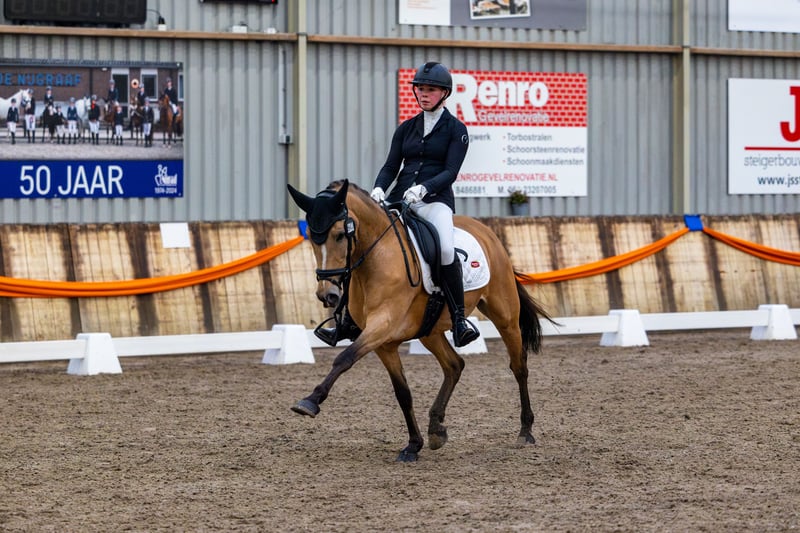 ⭐️⭐️⭐️⭐️⭐️ Looking for a small horse due to transition to riding horses Jamies Lovely Jayda (by Orchids Cestanni) is a 12-year-old chestnut mare standing at 1.48 m. Jayda is competing in Z2 dressage with wins and has previously jumped up to 0.90 m. Jayda is well-behaved and ideally suited as a learning pony, so we are seeking an ambitious rider who wants to develop her further in the sport. She has no faults and is easy to handle at the farrier, in daily interactions, and on the trailer. Jayda tends to become tense when jumping, which is why she has only been competed in dressage over the past year. Four years ago, she had a foal, which we still own. For videos and/or more information, please contact us via WhatsApp at 06-25223328. Dealers are kindly asked not to respond.