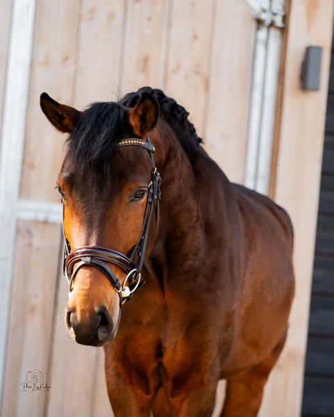 This incredibly sweet and compact New Forest pony is ready to move to his new home. Joly’s Tiago is a 4-year-old, large D-pony gelding by Riddersholm Salem X Dusty. Tiago is a very gentle, soft pony. He loves cuddling and grooming. Under saddle, he is well-behaved and sensible, having never taken a wrong step, and is eager to learn (new) things. He has been out on unfamiliar terrain and rides nicely there as well. Although Tiago is very easy and obedient under saddle, I don’t consider him suitable for beginners given his age. Tiago has been ridden by multiple young and experienced riders, all of whom have done very well with him. Tiago has also attended show jumping training; he is well-behaved but finds it quite exciting. He absolutely does not want to hit the poles, which is very good. However, he could benefit from more relaxation in this area. Therefore, our current focus is more on dressage training and development. Handling and stable manners: Tiago is a big sweetheart! He loves taking naps, and you will often see him lying down. You can sit quietly beside him to cuddle. He is also friendly towards other horses. He has no (stable) defects, has been checked by the dentist, and is always properly vaccinated and dewormed. Tiago still finds the farrier a bit intimidating, but he improves every time! He is well-behaved in the grooming area (even with water) and easily loads onto the trailer or wagon. Tiago is in the higher price range. Would you like more information about Tiago? Feel free to send me a WhatsApp message or call +31 620928923. Please only contact me if you are genuinely interested!
