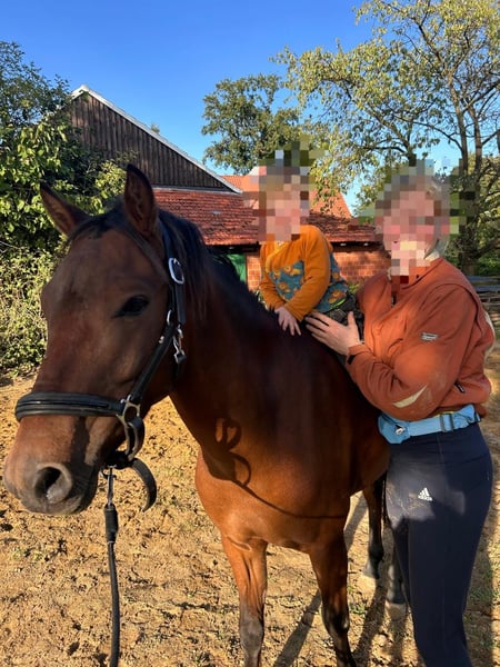Schicker New Forest Wallach Dieser schicke, clevere New Forest Wallach sucht ein liebevolles Zuhause. Er ist 4 Jahre alt und ca 1,35 m groß. Er kennt bereits die Longenarbeit und die Doppellonge. Hierbei mag er besonders kniffelige Aufgaben mit Geschicklichkeit und Stangenarbeit. Auch Freispringen liegt ihm und er versucht stets, die Abstände passend zu machen. Im Umgang ist er ein braves, aufgeschlossenes Pony mit Charakter, der gearbeitet und betüddelt werden möchte. Er kennt Sattel und Trense und ist mit beginnenden Handlungen des Anreitens in Berührung gekommen. Aufgrund Zeitmangels durch familiäre Gegebenheiten wird er roh abgegeben. Durch seine Haltung auf ganztägiger Weide kennt er Landmaschinen, Hunde und jegliche andere Verkehrteilnehmende. Er ist kinderfreundlich und zeigt sich mit ihnen sehr geduldig. In den letzten Jahren war er nicht krank oder verletzt aber hat dieses Jahr ein Sommerekzemen gehabt.
