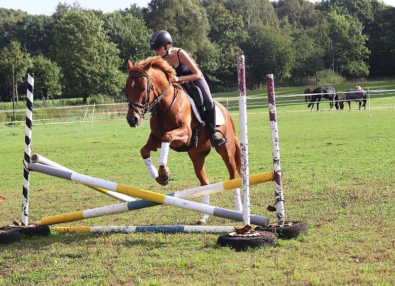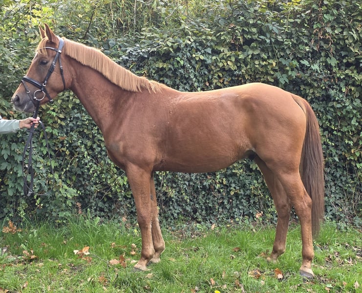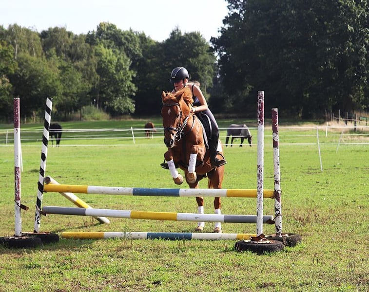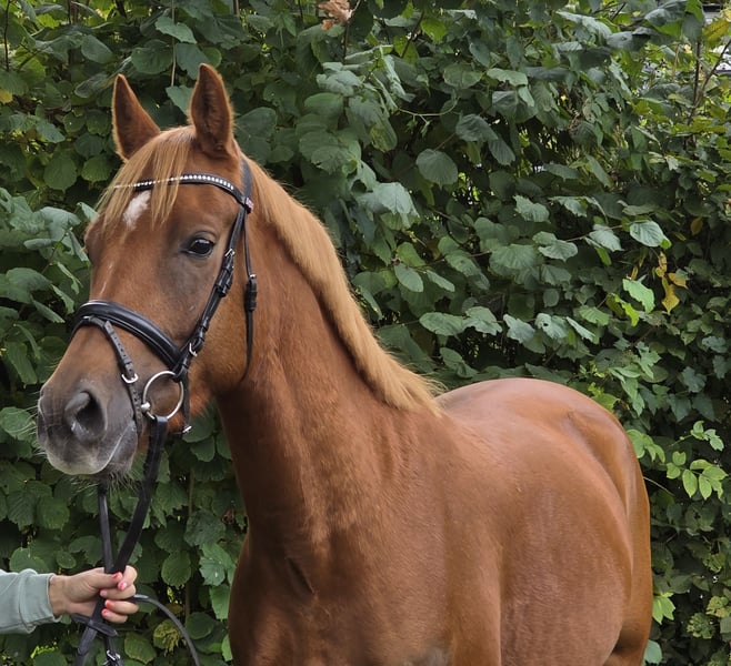 Komeet est un hongre New Forest mesurant actuellement 1,50 m avec des papiers complets. Étant donné qu'il n'aura que 5 ans en 2026, il pourrait encore gagner quelques centimètres. Cependant, Komeet convient parfaitement aussi à de grands cavaliers. Komeet évolue en dressage à un bon niveau E et réalise déjà de bons sauts sous la selle. C’est un poney idéal pour le sport ou les loisirs. Le petit « grand » vient directement du éleveur. Komeet est tout simplement fantastique à monter. Il connaît le manège, la carrière intérieure et les sorties à l’extérieur. Un examen vétérinaire récent est disponible. Pour plus d’informations, n’hésitez pas à nous contacter au : 0177/2721831.