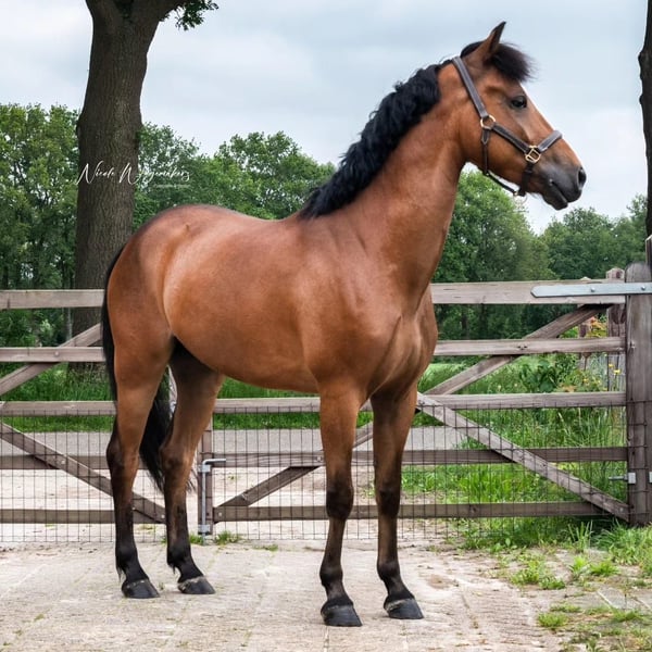 Lucky (Spoekedammetje’s Nick x Justice H.R.) is a beautiful 5-year-old gelding suitable for versatile sports. Lucky is registered with the New Forest studbook and currently has a nice height of 1.45m, making him the ideal sport pony for the versatile rider. His mother, Justice H.R. x Kantjes Ronaldo, was competing at Z-level show jumping at the age of 6 and was put into breeding due to COVID. Despite his younger age, he navigates the courses well and has already gained good experience in this area. In addition to his jumping talent, he also possesses a lot of quality and beautiful movement, which allows him to shine in the dressage ring. Lucky has a nice and willing character, which makes him eager to work for his rider. He is also a pleasant and sweet pony to handle, including activities such as moving, grooming, saddling, and all other interactions. For more information about this top pony, you can contact me at 06 29024323 or send a message.