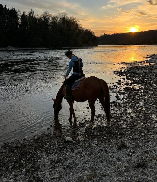 Fattrice castana di 14 anni, altezza 1,55 m, ex cavalla da polo, dolce e socievole anche con altri cavalli, facile da caricare e sicura nel traffico. Per ulteriori informazioni: +41 (0)79 769 70 98