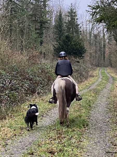 Née le 25.05.2019. Robe : pie alzane tobiano Toise : 125 cm au garrot. ONCP Maïka est une jument proche de l'homme débourrée sous la méthode horsemanship (éthologie) par Johan Hofmans. Très bonne jument de randonnée, elle part seule, passe partout. Elle est habituée aux chiens. Attachante, agréable à monter car très fine dans les demandes, elle pourrait également correspondre à un pilote désirant de faire plaisir en compétition. Elle reste verte dans le travail en carrière