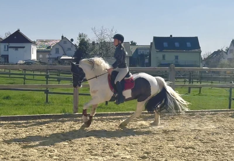 Für unsere auffällige Welsh Partbred Stute Brynnebo It’s Magic („Maggy“), 12 Jahre alt und ca. 1,46 m groß, suchen wir ein passendes Zuhause. Maggy ist ein absoluter Blickfang – viele sagen, sie sieht aus wie ein Schleichpferd in echt. Mit ihrer besonderen Scheckung, der langen, vollen Mähne und ihrem ausdrucksstarken Auftreten fällt sie überall auf. Sie stammt aus Wales und ist im Zuchtbuch der Welsh Pony & Cob Society eingetragen. Ihr Vater ist der Welsh-Cob-Hengst Brynnebo Magic aus bewährten Linien mit viel Bewegung und Arbeitsfreude. Maggy wurde bei ihren Vorbesitzern ein- und zweispännig gefahren und bringt hier eine gute Grundlage mit. Im Umgang ist sie sehr menschenbezogen, freundlich und ausgesprochen kinderlieb. Sie zeigt keine Unarten wie Beißen, Treten oder Steigen. In der Herde ist sie rangniedrig und geht Konflikten eher aus dem Weg. Unter dem Sattel steht Maggy noch am Anfang. Sie wird erst seit wenigen Monaten intensiver geritten und befindet sich daher eher auf dem Ausbildungsstand eines jungen, unverbrauchten Pferdes. Sie ist sehr motiviert und bringt viel Energie mit. Sie zeigt raumgreifende Gänge bei moderatem Schwung und ist dadurch sehr bequem zu sitzen. Klinische AKU von 09/2025 vorhanden.
