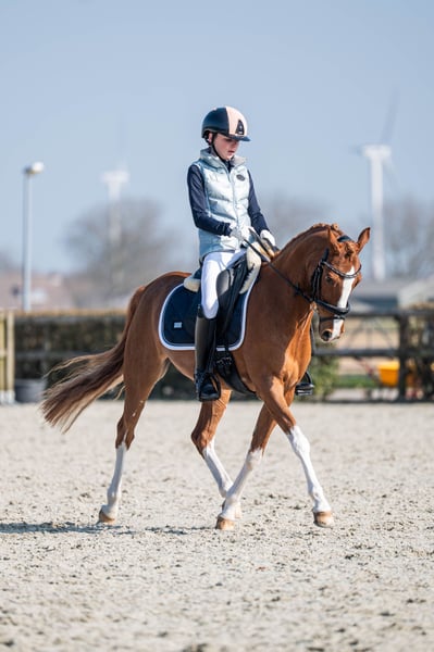 Duinveldts Autumn (Rose) Met pijn in het hart bieden wij onze bijzondere Welsh merrie Duinveldts Autumn (Rose) te koop aan. Een pony die alles heeft: kwaliteit, ervaring en een karakter waar je op kunt bouwen. Rose is Z2 dressuur geklasseerd tussen de ponys met meerdere winstpunten (altijd winst in het Z2). Zij is een echte schoolmaster, die jonge ruiters met vertrouwen door de baan begeleidt, maar ook voor een ambitieuze ruiter veel te bieden heeft. Onder het zadel beschikt Rose over veel power en werklust, zonder haar eerlijke en betrouwbare instelling te verliezen. Ze laat je nooit in de steek, ook niet op wedstrijd. Haar sterke wedstrijdmentaliteit maakt haar een pony waar je met een gerust hart de ring mee in gaat. In de omgang is Rose een droom: Lief en betrouwbaar op stal Geen stalgebreken Netjes, schoon en makkelijk in de dagelijkse verzorging Houdt van buitenritten en strandritten Rose is recent röntgenologisch goedgekeurd, inclusief hals en rug, zonder bemerkingen. Herkeuren is geen probleem (kosten koper). Afstamming Rose is een Welsh pony met sportpredicaat en stamt af van de bekende hengst Orchard Boginov, wat haar kwaliteit en bewegingsmechanisme duidelijk verklaart. Reden van verkoop Onze dochters groeien uit haar en worden helaas te groot. Zadel en toebehoren eventueel over te nemen tegen meerprijs