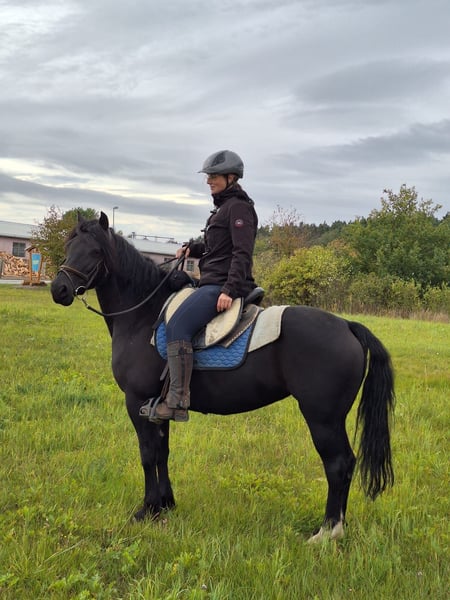 1,47m, 5-gänger (nicht ausgebildet, zeigt aber alle Gänge je nach Stecke und Tagesform), voll reitbar, Standort 04874 Sachsen, barhufer (sehr gutes Hufhorn), geht alleine ins Gelände, kein Buckeln oder sonstige Unarten unterm Sattel, verzeiht Fehler, augenscheinlich gesund, am Boden eine Herausforderung, zeigt dieses aufmüpfige Verhalten auch gegenüber anderen Pferden in der Herde, Wird aus letzterem Grund verkauft. Sie lässt seit ein paar Monaten die eigentlich ranghöhere Stute nicht mehr in den Offenstall ans Heu. Was ich mir für Sie wünsche: Jemand der ganz viel reitet, Wanderreiten etc. und eine gut sozialisierte Herde.